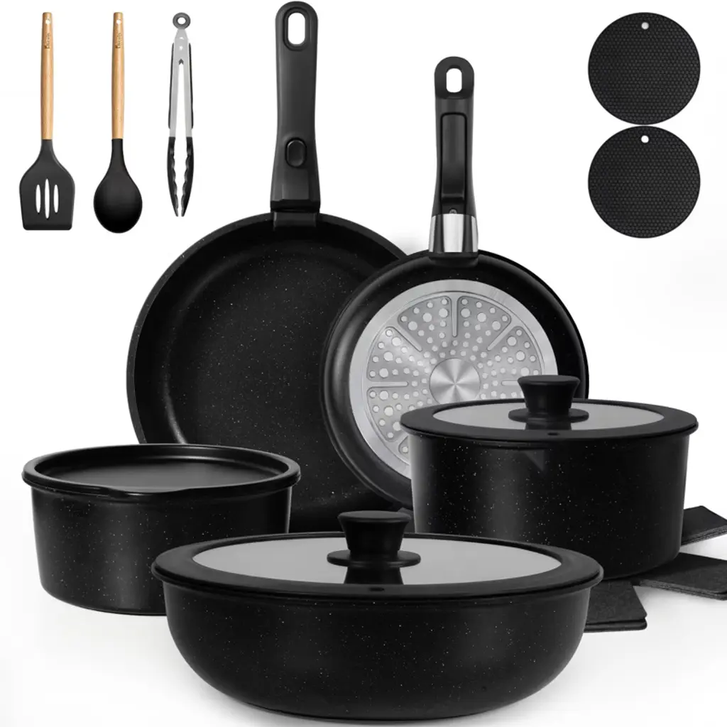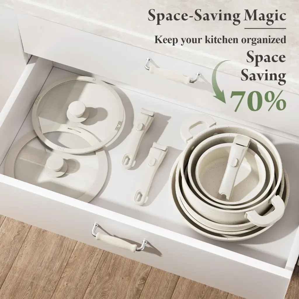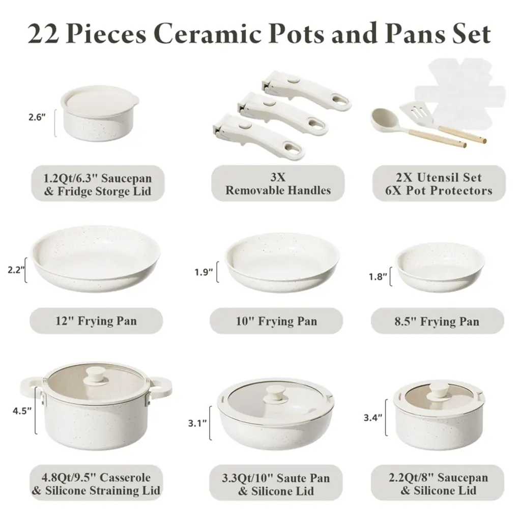 Itopfox 22-piece Non-toxic Ceramic Cookware Set With Removable Handles, Non Stick, Induction Compatible, Dishwasher Safe, Pfas/ptfe/pfoa Free