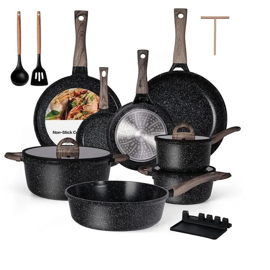 Discover this amazing 22 - piece pots and pans set! Crafted from natural ceramic, it's non - toxic, free from harmful substances like Teflon and PFAS. The set features an innovative detachable handle design, allowing you to transform cookware for different uses. Its ultra - non - stick surface enables you to cook with less oil, and cleaning is a breeze. The stackable design saves up to 70% of kitchen space. With a thickened, enlarged magnetic base, it's compatible with all stovetops (except the 9.5" soup pot casserole in the oven). Made of lightweight and durable recyclable aluminum, it heats evenly and quickly. The set includes various pans and accessories, perfect for families and those seeking a healthy, convenient cooking experience.