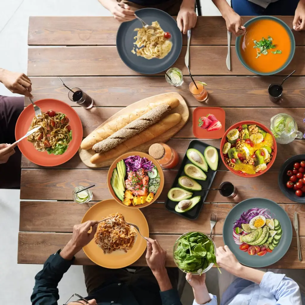 Discover this amazing 48-piece dinnerware set designed for 4 people. It's made of food-grade PP material, which is safe and healthy. Unlike traditional porcelain or ceramic, it's unbreakable and long - lasting, perfect for all ages. The set includes bowls, salad plates, dessert plates, mugs, cutlery, and fruit forks, providing a complete dining solution. It's easy to clean as it's dishwasher and freezer safe. Whether you're having a party at home, going on a picnic or camping, or having your daily meals at school or the office, this set is your best choice. It also makes a great present for various occasions, adding convenience and color to your life.