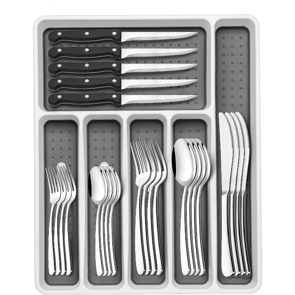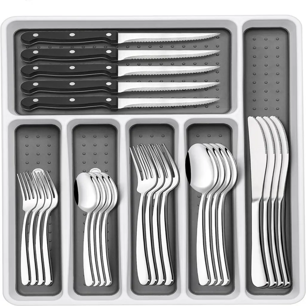 Itopfox 49-piece Silverware Set With Organizer, Heavy Duty Stainless Steel Flatware For 8, Cutlery Utensil Sets With Steak Knives, Rust-proof