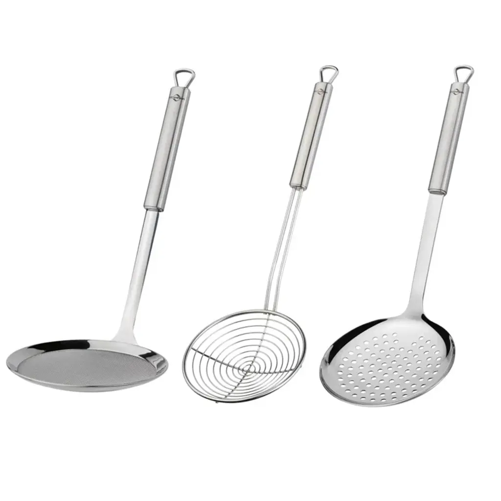 Upgrade your kitchen with this 8 - piece cooking utensil set. It comes with a ladle, skimmer, slotted turner, and more, ensuring you have the right tool for every cooking job. The utensils are crafted from high - grade stainless steel, which is not only durable and rust - resistant but also dishwasher - safe. Their mirror - finish polishing gives them a dazzling look, and you can hang them for easy storage. After use, just wipe with a soft cloth and keep dry. Ideal for daily cooking, from making family dinners to whipping up quick snacks, this set will make your cooking experience more enjoyable and efficient.