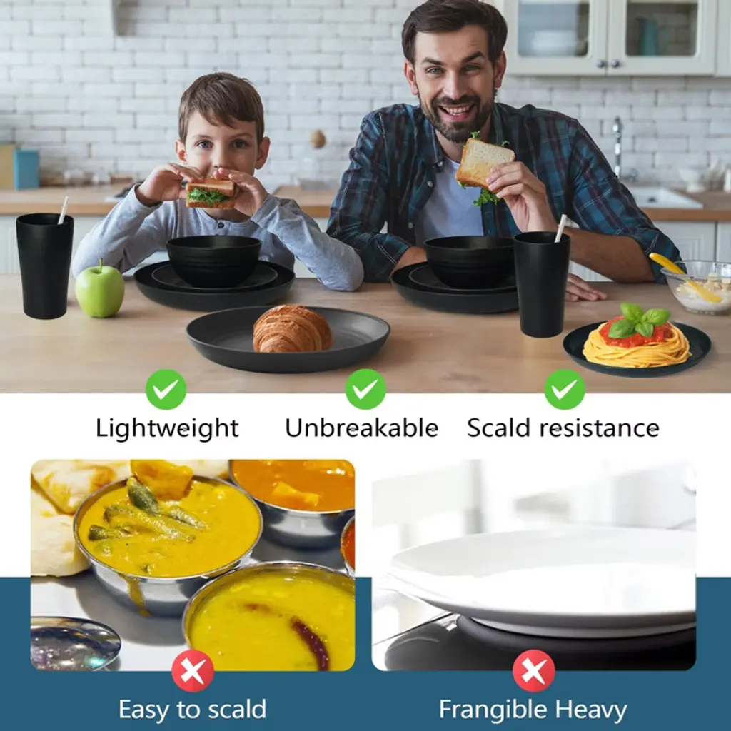 Itopfox 80-piece Kitchen Plastic Wheat Straw Dinnerware Set, Includes Plates, Cups & Flatware, Dishwasher Safe, Unbreakable For Outdoor Use, Black