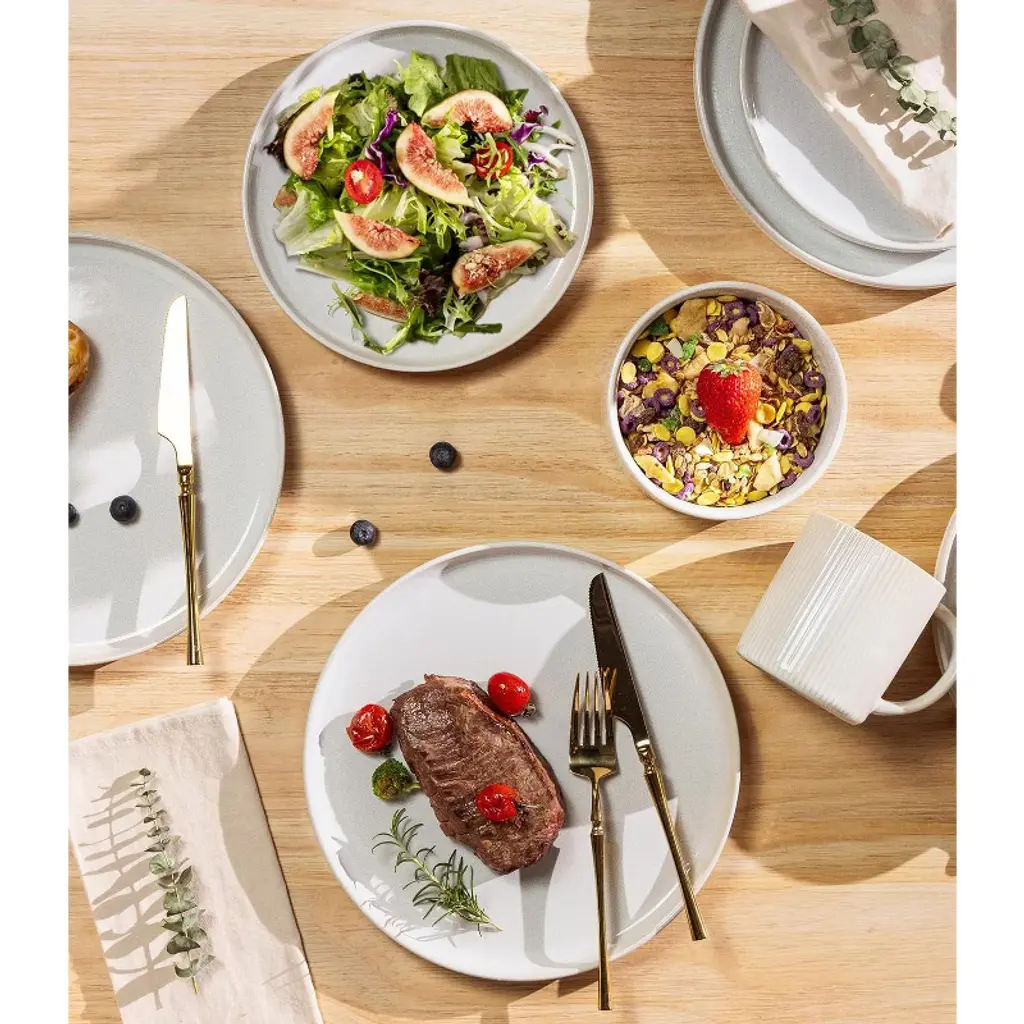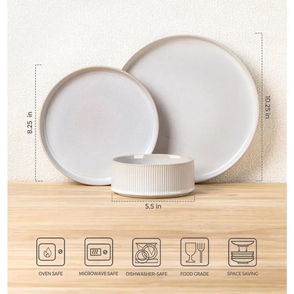 Discover this exquisite ceramic dinnerware set! Handcrafted by skilled artisans, it features a Double Reactive Glaze for a unique color on each piece. Made of lead - free and cadmium - free materials, it's fired at a high temperature, ensuring durability and heat - resistance. Safe for use in the oven, microwave, and dishwasher, it's incredibly convenient. The stackable design saves space in your kitchen. This 12 - piece set includes dinner plates, salad plates, and cereal bowls, perfect for a family of 4. Its natural tones and calming design bring elegance to any dining occasion. Whether for daily use or as a gift for Thanksgiving, Christmas, housewarmings, or weddings, it's a wonderful addition to your home.