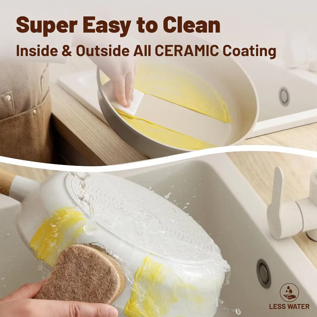 Itopfox Ceramic Nonstick Cookware Set, Non-toxic Healthy Pots And Pans With Ceramic Coating, Dishwasher & Oven Safe, Induction Compatible, 13-piece
