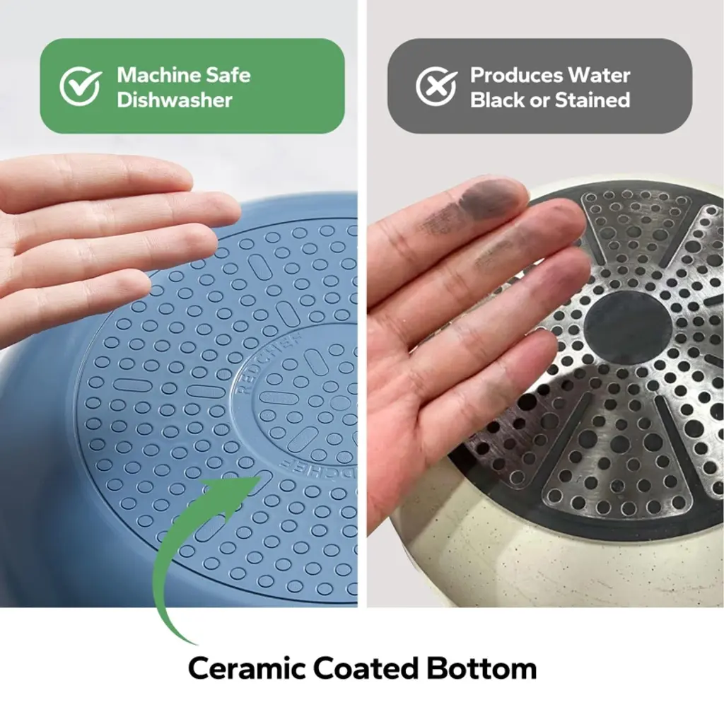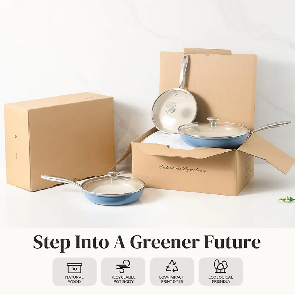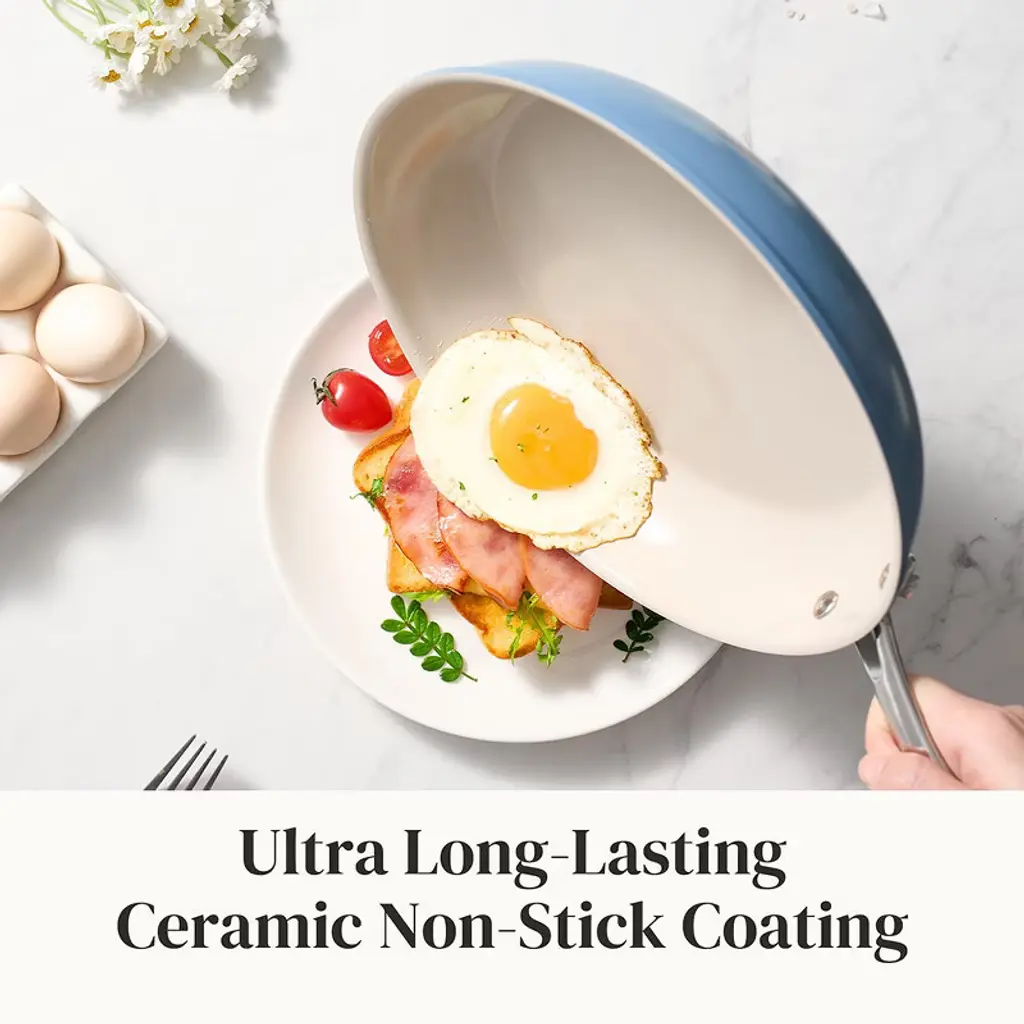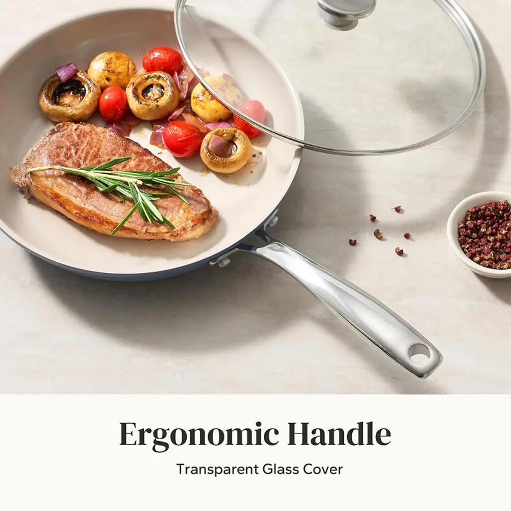 Itopfox Ceramic Nonstick Cookware Set With Tempered Glass Lids, Dishwasher & Oven Safe, Induction Compatible For All Cooktops, Blue