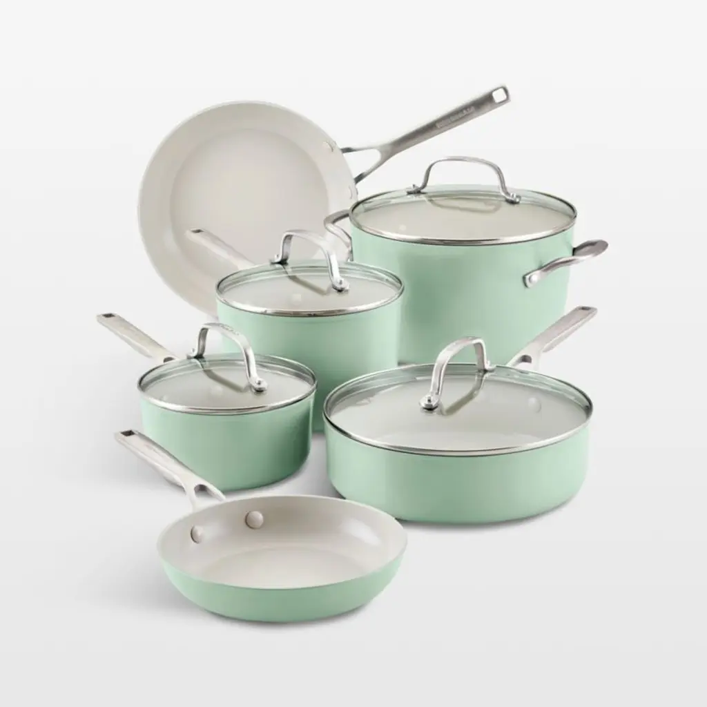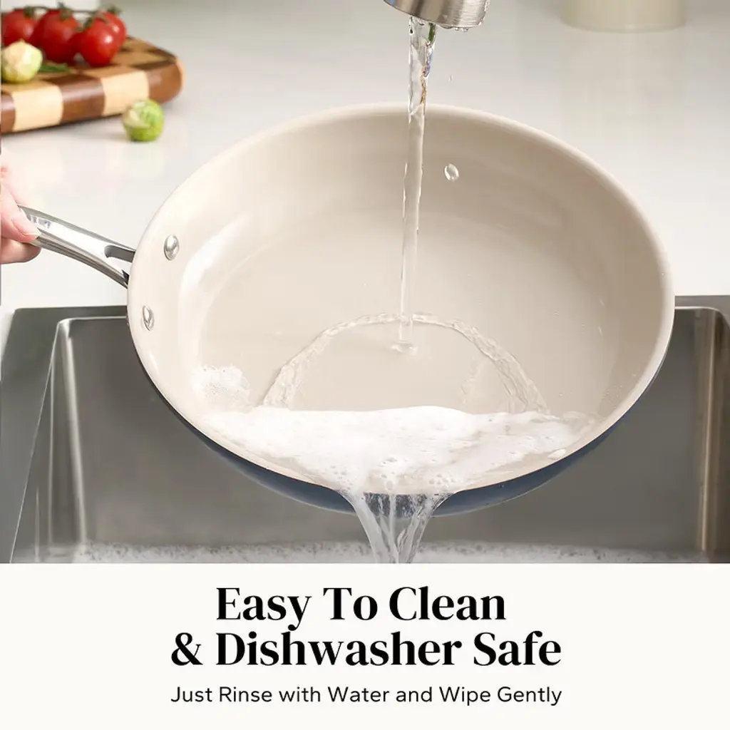 Upgrade your kitchen with this top - notch non - stick cookware set. It features a triple - layer ceramic non - stick coating that is not only durable and safe but also offers outstanding non - stick performance, enabling you to cook with minimal oil or butter. The precision - engineered bottom guarantees rapid and even heat distribution, so you won't have to worry about hot spots ruining your dishes. The ergonomic stainless - steel handle, double - riveted for strength, allows for easy stovetop - to - oven transitions. Cleaning is a breeze; a simple wipe or a dishwasher cycle will suffice. This cookware is incredibly versatile, working well on induction, gas, and electric stovetops. It's also oven - safe, with the handle and coating able to withstand high temperatures up to 842 °F. The set comes with pans and lids, offering multiple cooking options. Whether you're a professional chef or a home cook, this cookware set will make your cooking experience more enjoyable and efficient.