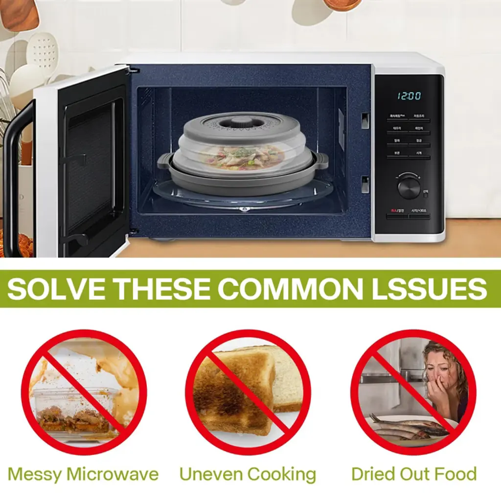 Itopfox Microwave Splatter Cover With Anti-scald Base Plate, Large Plastic & Silicone Vented Collapsible Guard Lid, Plate Holder & Kitchen Colander