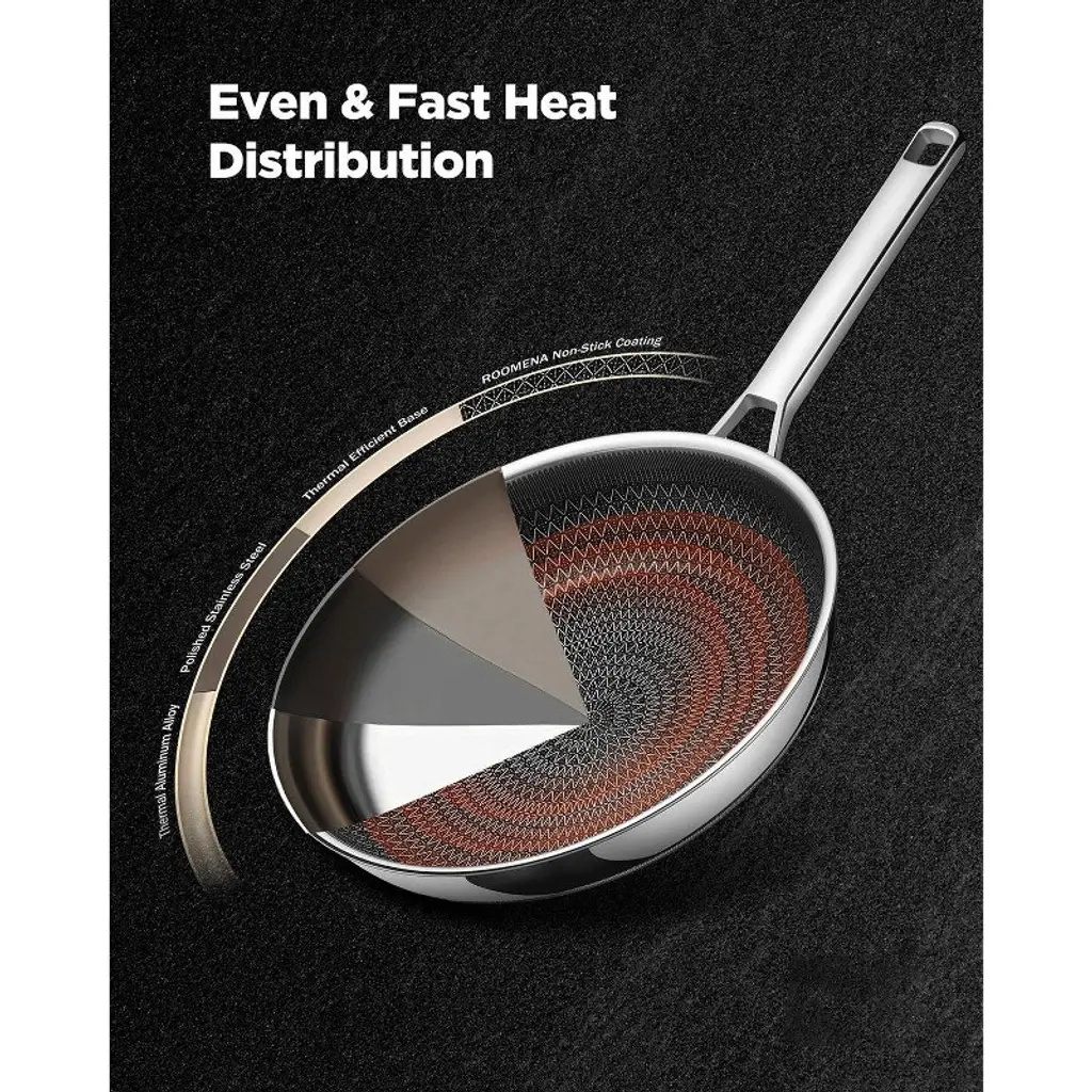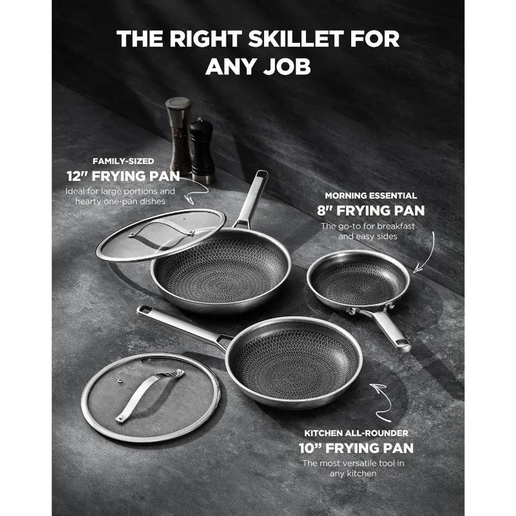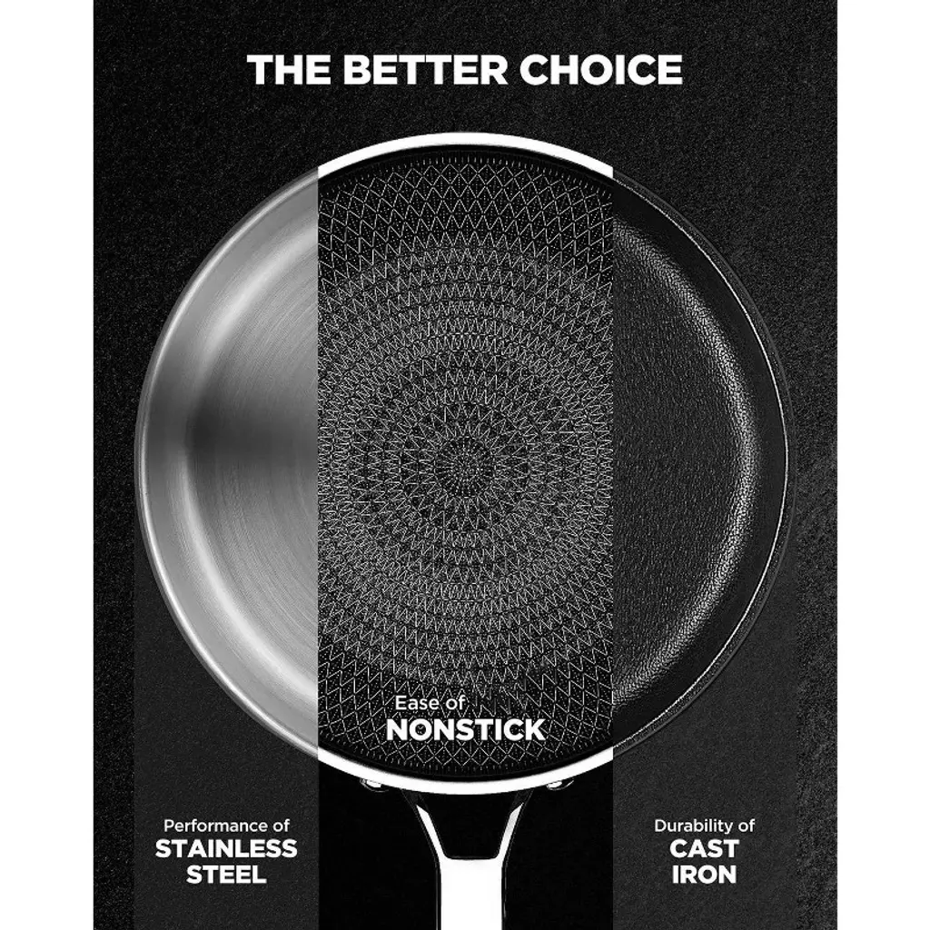 Itopfox Nonstick Frying Pan Set With Lids Tri-ply Hybrid Ceramic Skillet Stainless Steel Pans, Pfas/pfoa/ptfe Free, Dishwasher & Oven Safe, Induction