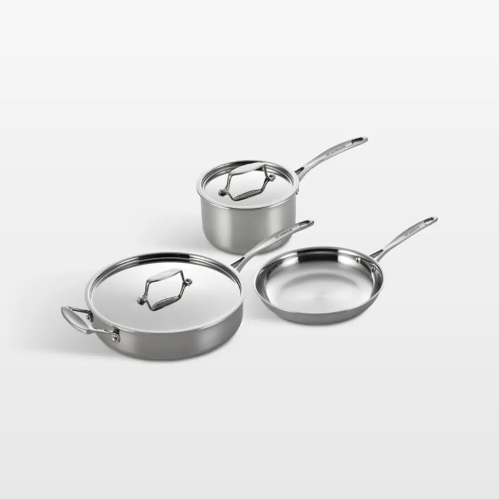 Upgrade your kitchen with this nonstick frying pan set. Crafted from reinforced tri - ply stainless steel, it features a ceramic nonstick coating for effortless food release and easy cleanup. The impact - bonded bases offer fast and even heat distribution, making cooking more efficient and precise. This set is induction - ready and compatible with all stovetops, giving you ultimate flexibility in the kitchen. It's non - toxic, free of PFAS, PFOA, and PTFE, ensuring a healthy cooking environment. The high - performance nonstick ceramic coating and wear - resistant design make it dishwasher - safe, saving you time on cleaning. Ideal for various cooking occasions, this pan set will bring convenience to your daily life.
