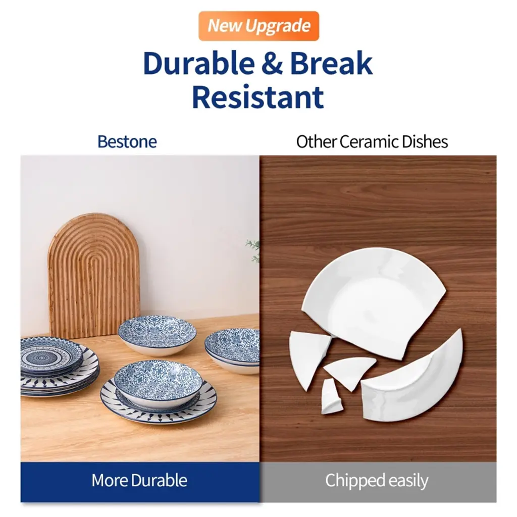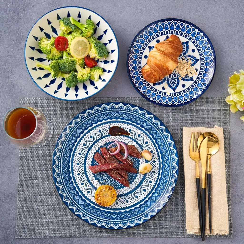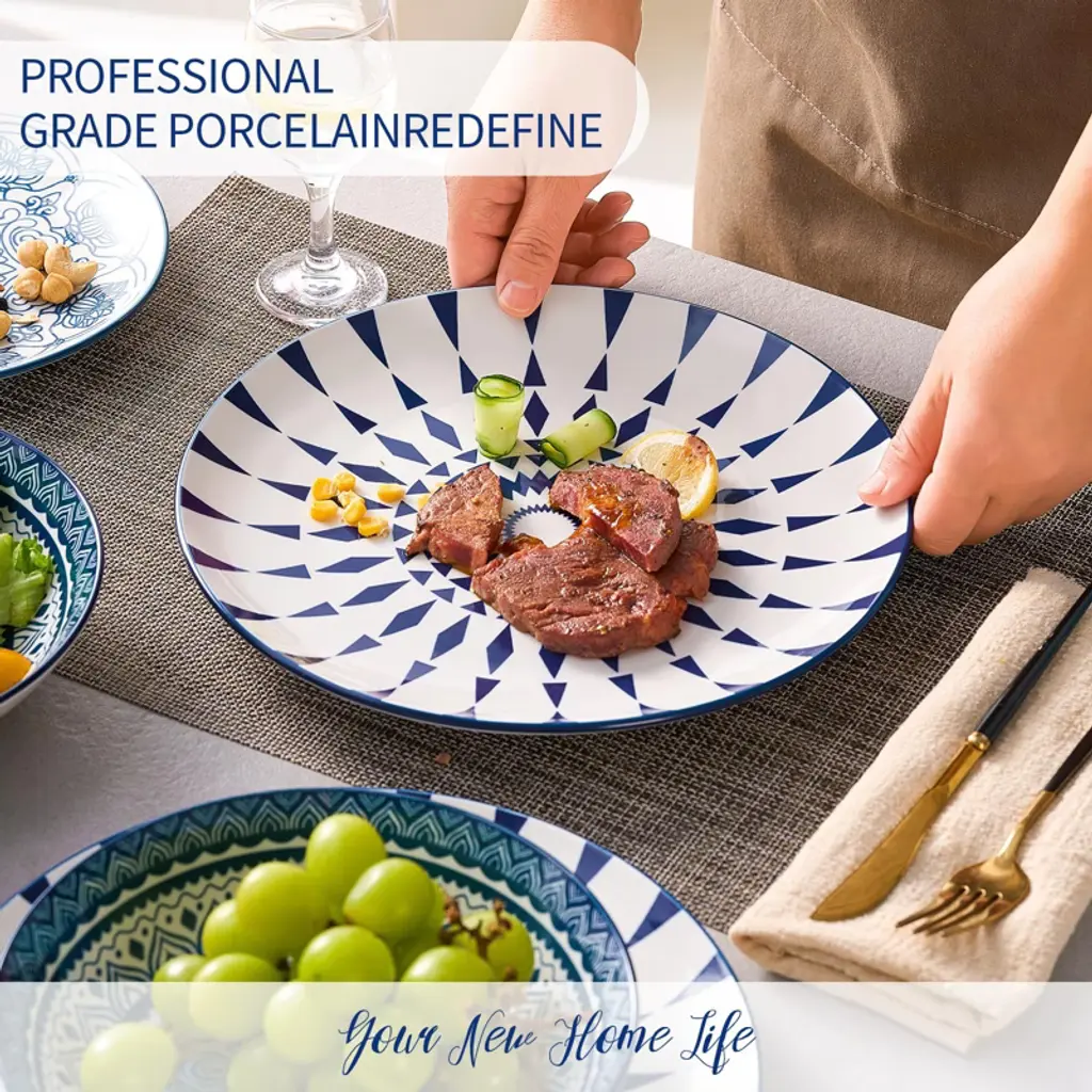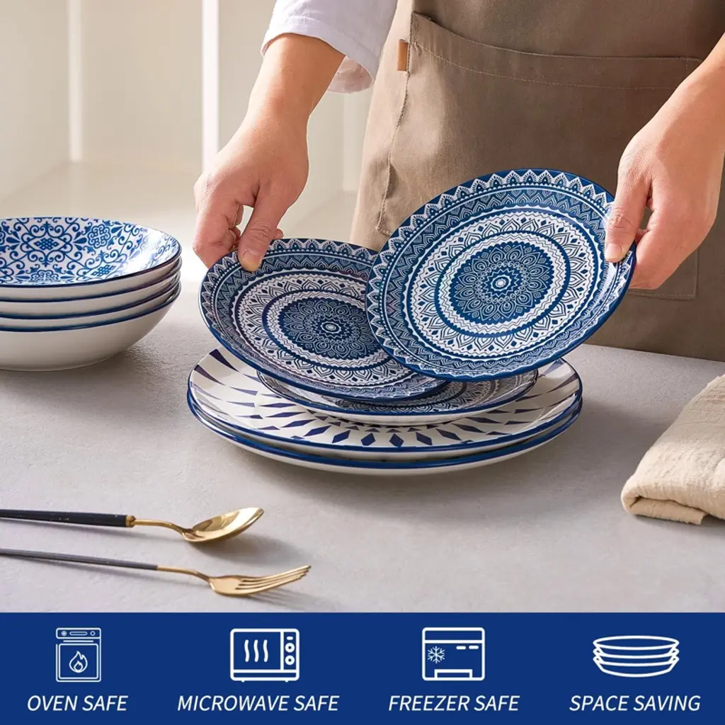 Discover this exquisite dinnerware set that offers a perfect blend of functionality and style. It consists of 12 pieces, including 4 dinner plates, 4 dessert plates, and 4 bowls, serving 4 people. Crafted from premium porcelain, a lead - free and non - toxic ceramic, it's chip - resistant and sturdy. Cleaning is a breeze as it can be safely washed in the dishwasher and used in the microwave. This set makes an ideal gift for housewarmings, young couples, and new homes. Its modern and stylish design can match any table linen, making it suitable for a wide range of occasions, from daily use to special celebrations. Elevate your dining experience with this exceptional dinnerware set.