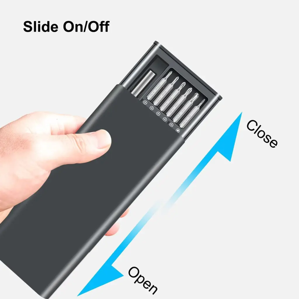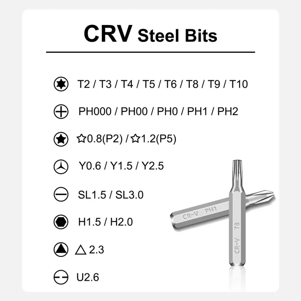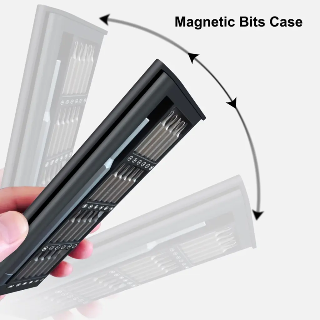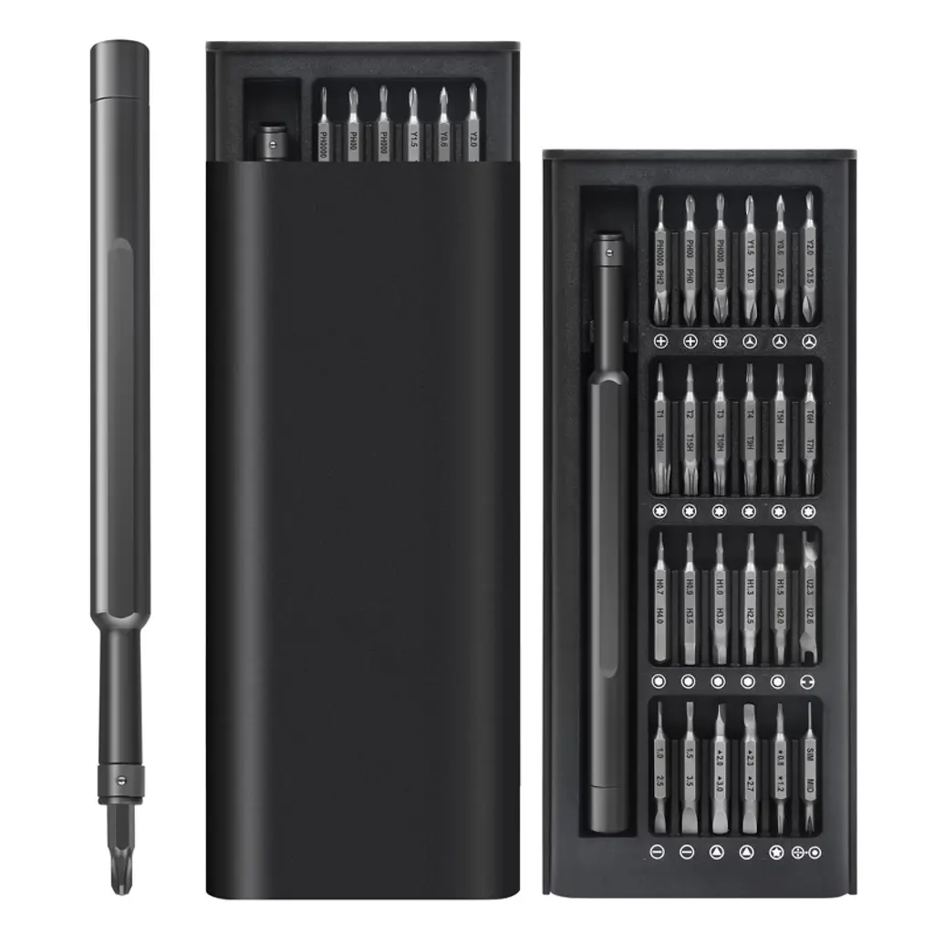 Discover this 25 - in - 1 precision screwdriver set, a versatile tool for all your repair needs. Made with a stainless - steel handle and S2 drill bits in a plastic box, it contains 24 popular screwdriver bits. The set includes Phillips, flat head, hex, tri - point, torx, pentalobe, u - type, and triangle bits. The magnetic storage case keeps the bits organized and prevents loss, with clear labels for each bit. Its ergonomic design features an eight - sided non - slip handle and a 360° rotating cap for smooth torque. The magnetic bits can easily pick up small screws. Whether you're a professional or a home user, it's perfect for disassembling, repairing, and reassembling electronics like computers, laptops, tablets, and eyeglasses. With this set, you can handle various repair tasks efficiently and comfortably.