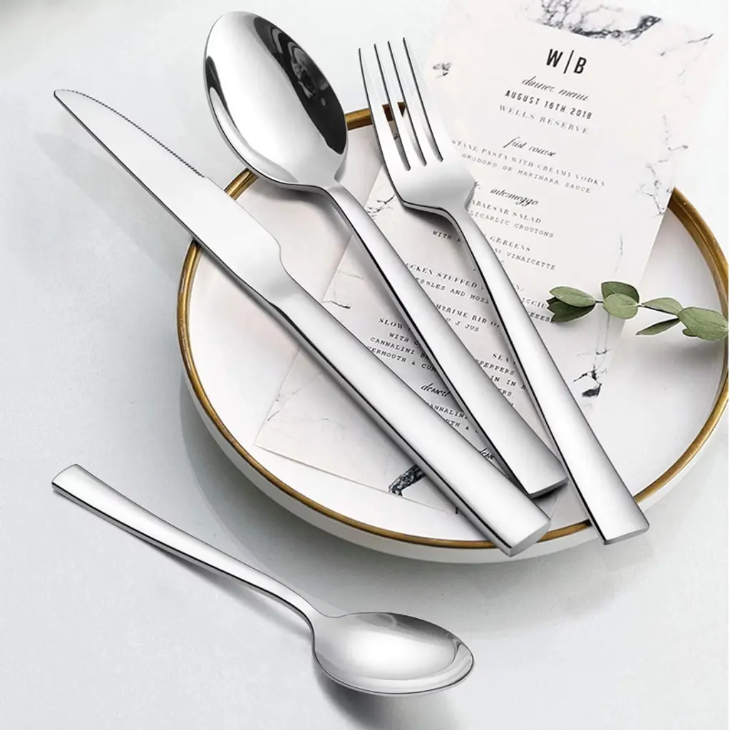 Discover this amazing 10 - piece silverware set for 2. Crafted from high - quality stainless steel, it's rust - resistant and built to last. The set includes knives, forks, and spoons, offering a complete dining solution. Its square - edge design is not only modern but also ergonomic, providing a comfortable grip for all users. Whether you're having a family dinner at home, dining out at a restaurant, or attending a wedding party, this set is perfect. It's mirror - polished, giving it a shiny and elegant look that matches any tableware and kitchen style. And the best part? It's dishwasher - safe, saving you the hassle of hand - washing. Comes in a gift box, making it an excellent gift choice for special occasions. With a weight of 1.2 pounds, it's easy to handle and carry. Upgrade your dining experience with this versatile and stylish silverware set.