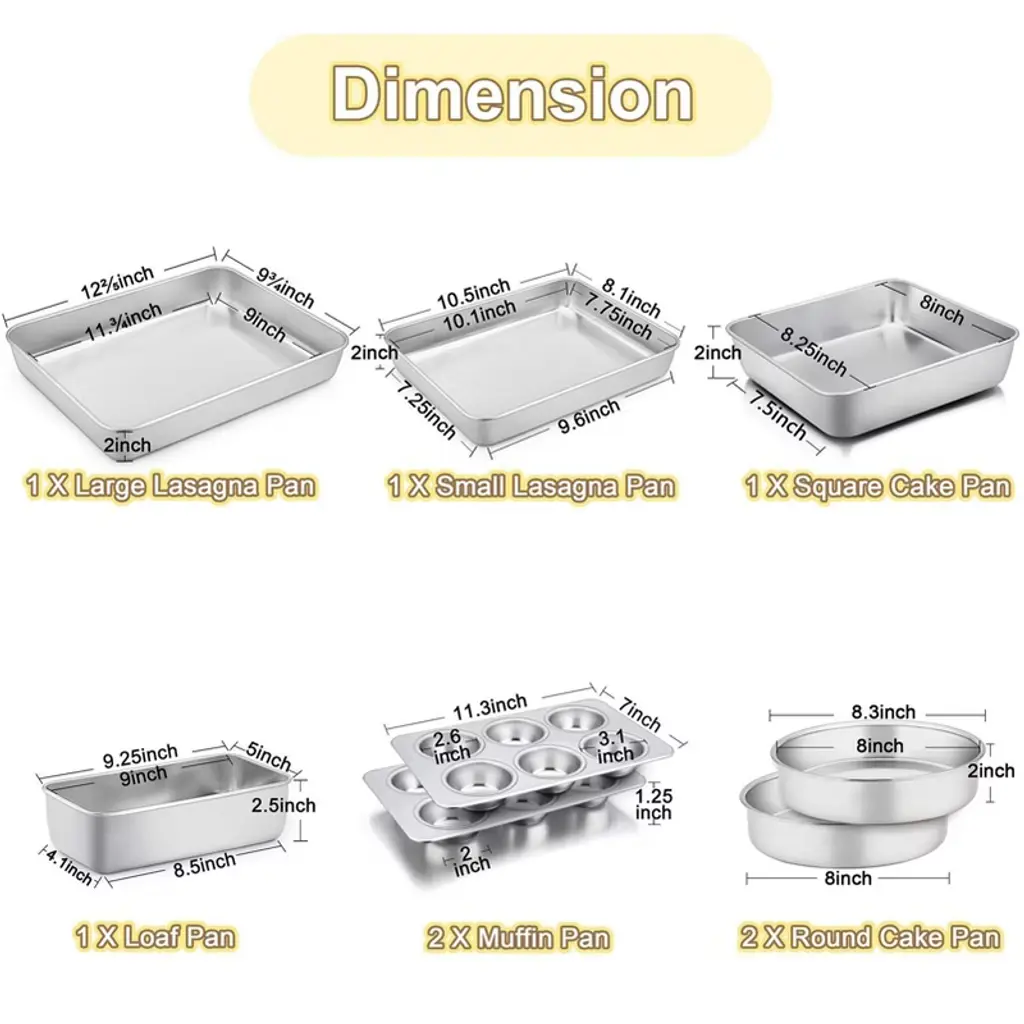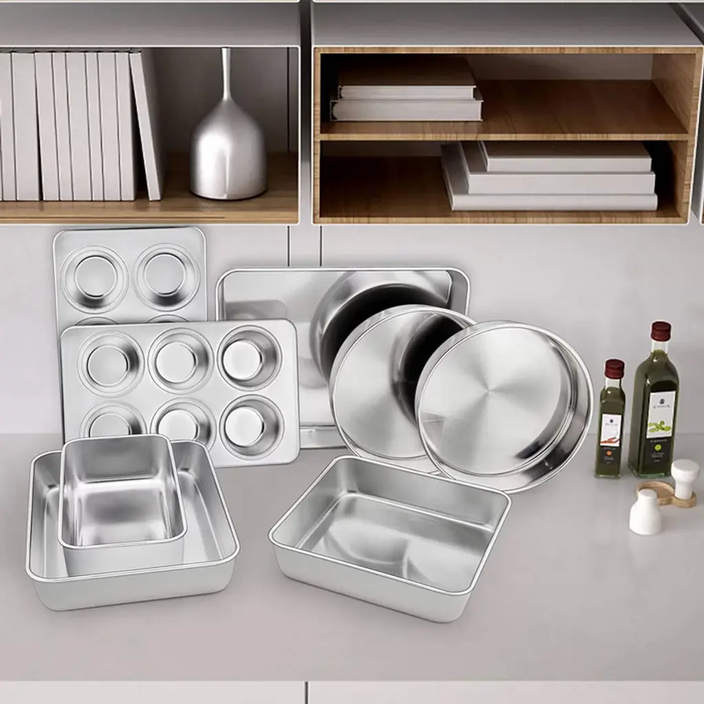 Upgrade your baking experience with this stainless - steel bakeware set. Made from pure stainless steel, it's a non - toxic and healthy choice for your daily baking needs. This 8 - piece set includes various pans, such as lasagna, round and square cake, loaf, and muffin pans, all oven - safe for most home ovens. The pans are designed with a mirror - finished process, making them easy to clean and dishwasher - safe, saving you time and hassle. Their heavy - duty construction ensures long - lasting use, and the smooth roll edges prevent hand injuries. Whether you're making delicious cupcakes, savory lasagna, or just storing leftovers, this set is versatile enough for all your kitchen needs. It's not only a practical addition to your kitchen but also a great gift for baking enthusiasts.