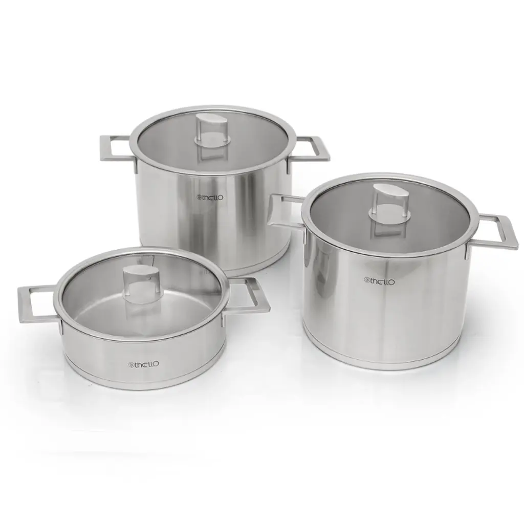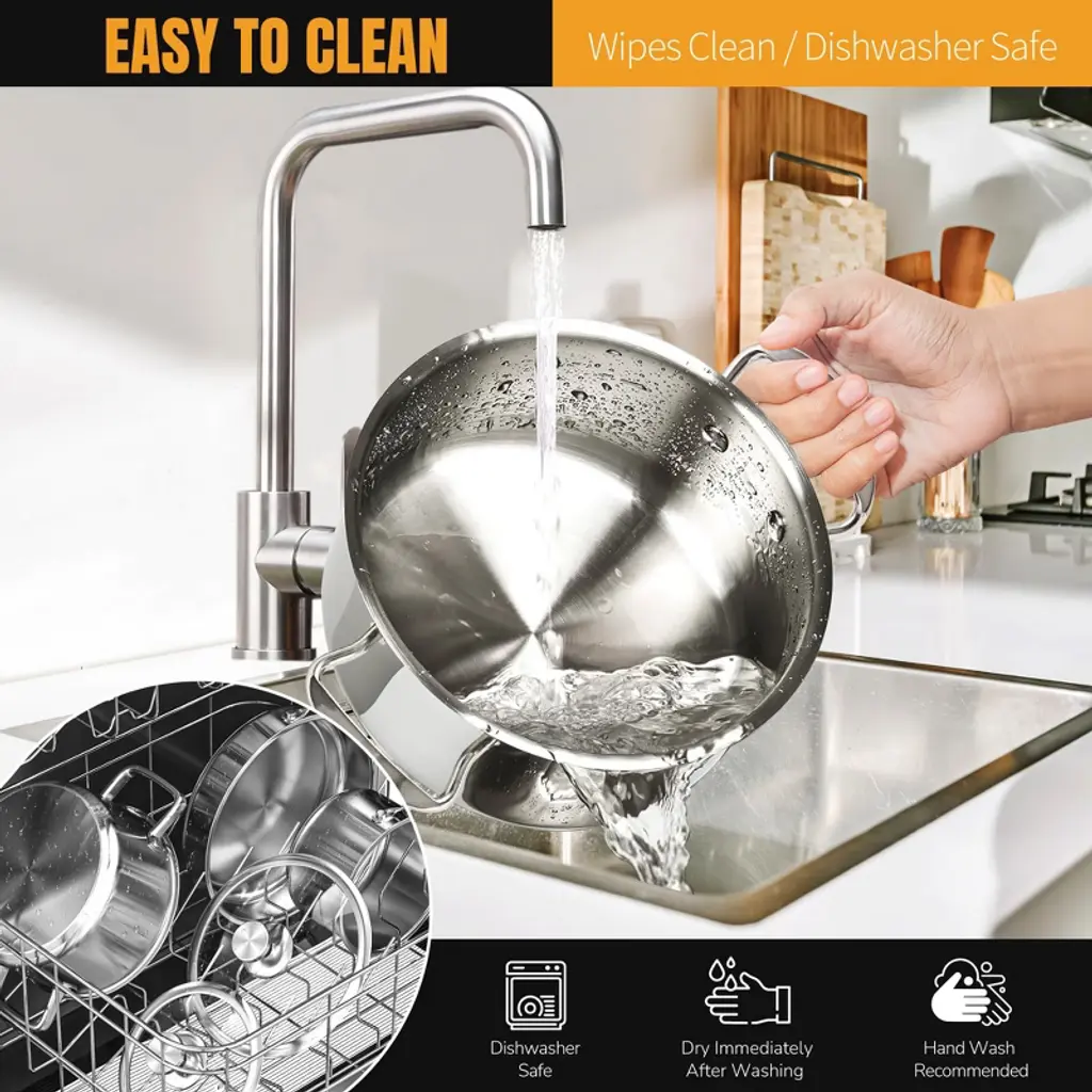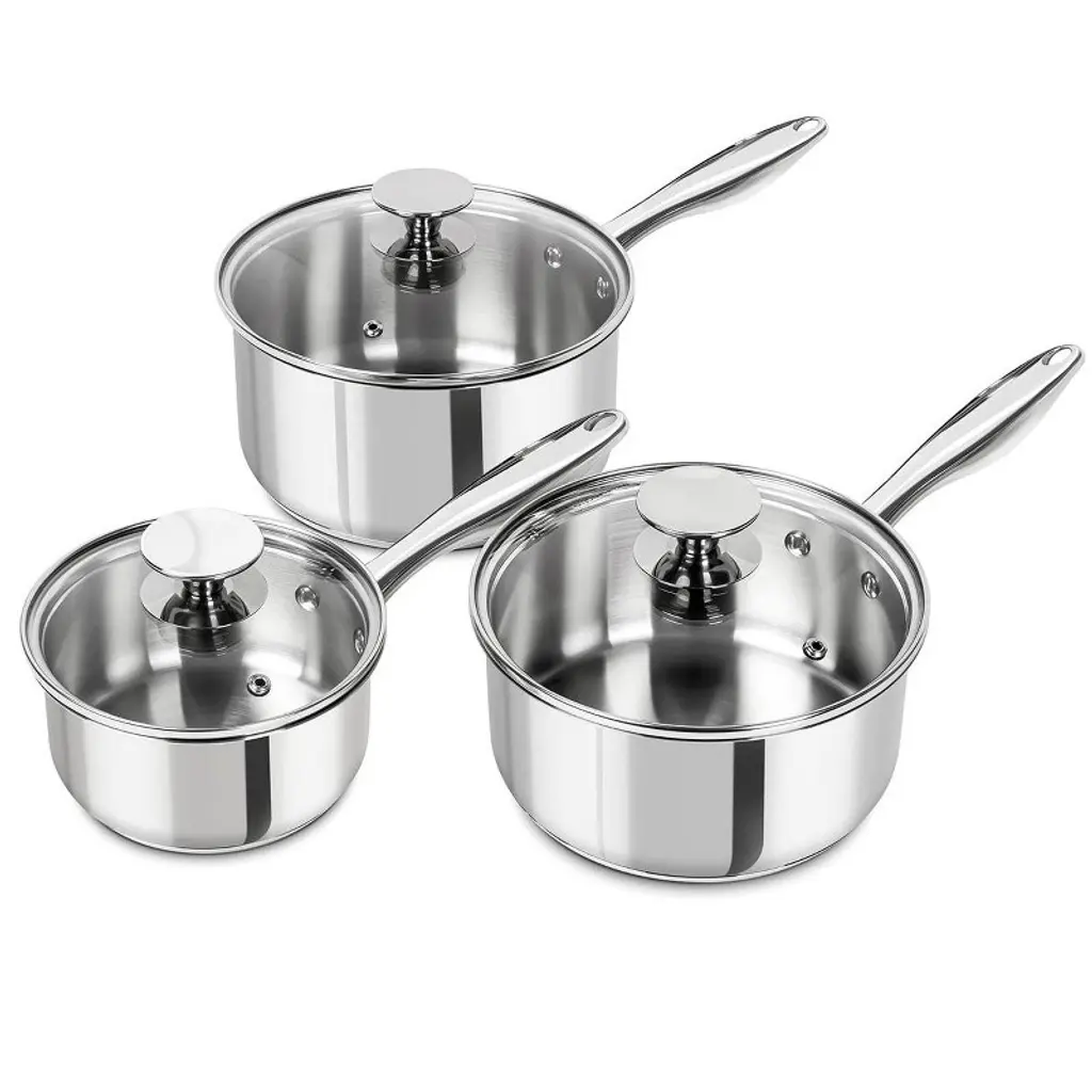 Upgrade your kitchen with this 6 - piece cookware set. It includes a 2 Qt pot, a 2.6 Qt pot, and a 3.7 Qt pot, all with lids. Crafted from 3 - ply premium stainless steel base with a thick aluminum core, it ensures fast and even heat distribution, giving you professional - grade cooking performance for meals of any size. Whether you're using an induction, electric, or gas cooktop, this set is up to the task. The pots are scratch - resistant and dishwasher - safe, making cleaning a breeze. The tempered glass lids with steam vents help retain heat and seal in flavors, making your meals healthier and more delicious. Ideal for any kitchen, this cookware set will make your cooking experience easier and more enjoyable.