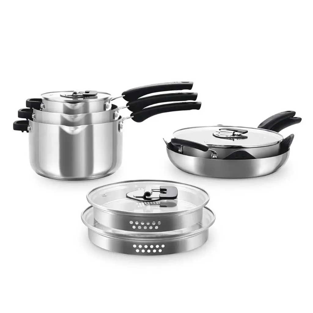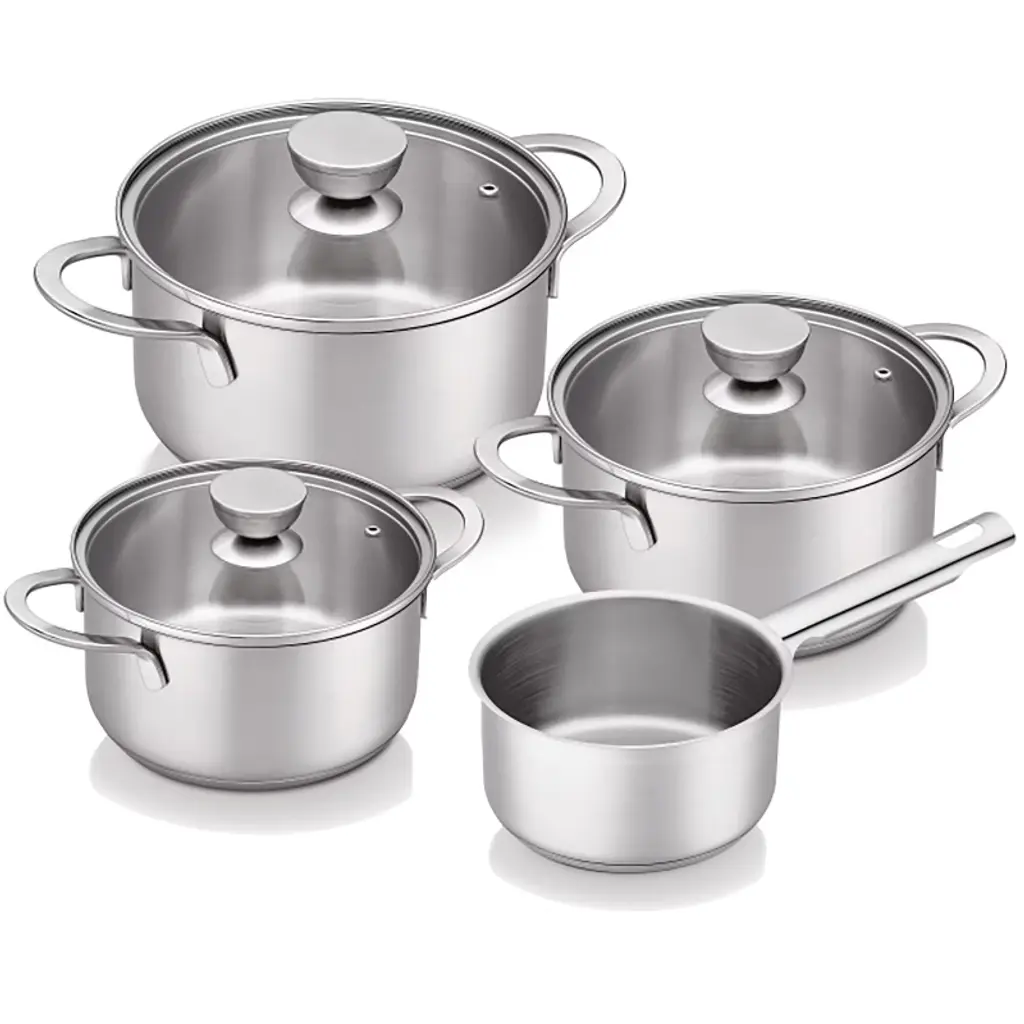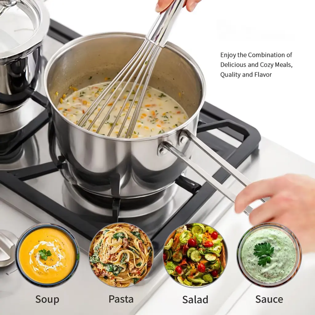 Upgrade your kitchen with this 6 - piece cookware set. It includes a 2 Qt pot, a 2.6 Qt pot, and a 3.7 Qt pot, all with lids. Crafted from 3 - ply premium stainless steel base with a thick aluminum core, it ensures fast and even heat distribution, giving you professional - grade cooking performance for meals of any size. Whether you're using an induction, electric, or gas cooktop, this set is up to the task. The pots are scratch - resistant and dishwasher - safe, making cleaning a breeze. The tempered glass lids with steam vents help retain heat and seal in flavors, making your meals healthier and more delicious. Ideal for any kitchen, this cookware set will make your cooking experience easier and more enjoyable.