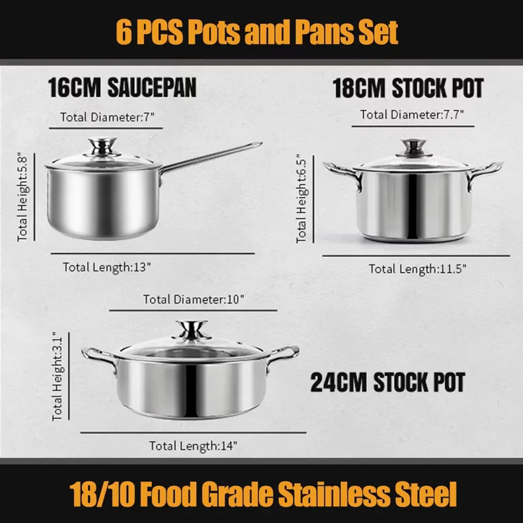 Itopfox Stainless Steel Cookware Set, 6-piece Nonstick Induction Pots & Pans Set, Works With Gas/electric Cooktops, Dishwasher Safe
