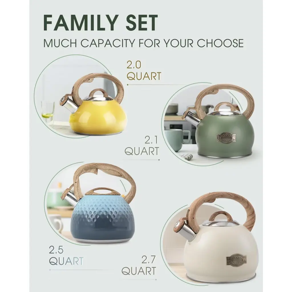 Discover this 2.1 - Quart stovetop whistling tea kettle, a must - have for tea lovers! Made of food - grade stainless steel, it's rust and corrosion resistant, ensuring long - term use. The heat - resistant silicone handle offers comfort and easy control of the nozzle. Its large capacity makes it suitable for family gatherings or small parties. The loud whistle alerts you when the water boils, even when you're busy with other chores. Compatible with all heat sources, it's a versatile addition to your kitchen. For gas stoves, use low or medium heat. If scale forms, simply remove it with lemon juice. This kettle brings convenience and safety to your tea - making experience.