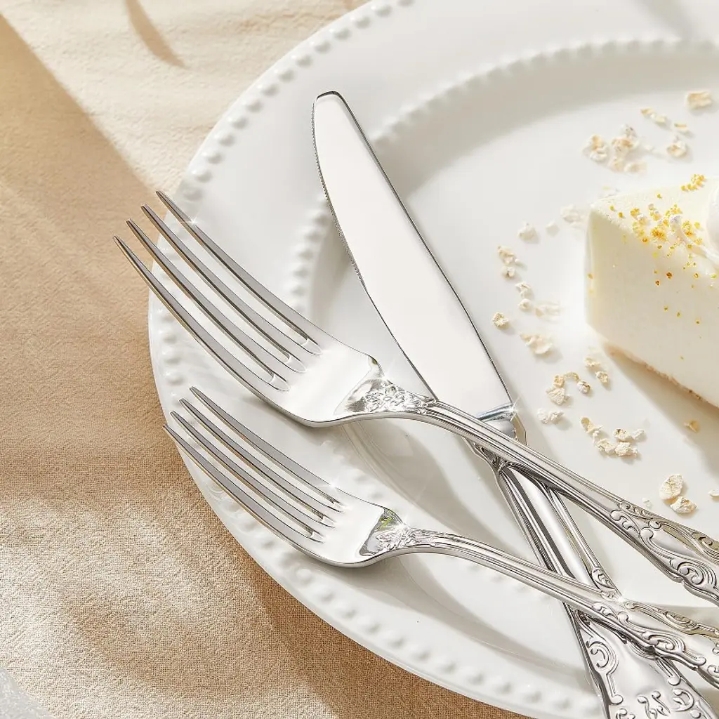 Upgrade your dining experience with this 20 - piece silverware set. It's designed for 4 people, including 4 dinner knives, 4 dinner forks, 4 dinner spoons, 4 salad forks, and 4 teaspoons. The set is crafted from premium 18/10 food - grade stainless steel, ensuring excellent corrosion resistance and long - lasting durability. The vintage floral design on the thick hand - carved handles with embossed blooms combines retro luxury and modern charm, adding a touch of elegance to any meal. It has a mirror - polished surface and streamline body molding, which makes it a breeze to clean. You'll never need single - use plastic again. This set is versatile, suitable for both everyday family dinners and special occasions like weddings and upscale parties. It's an ideal gift for those upgrading their table settings or for new homeowners. With this set, you can enhance your dining atmosphere and enjoy a more refined lifestyle.