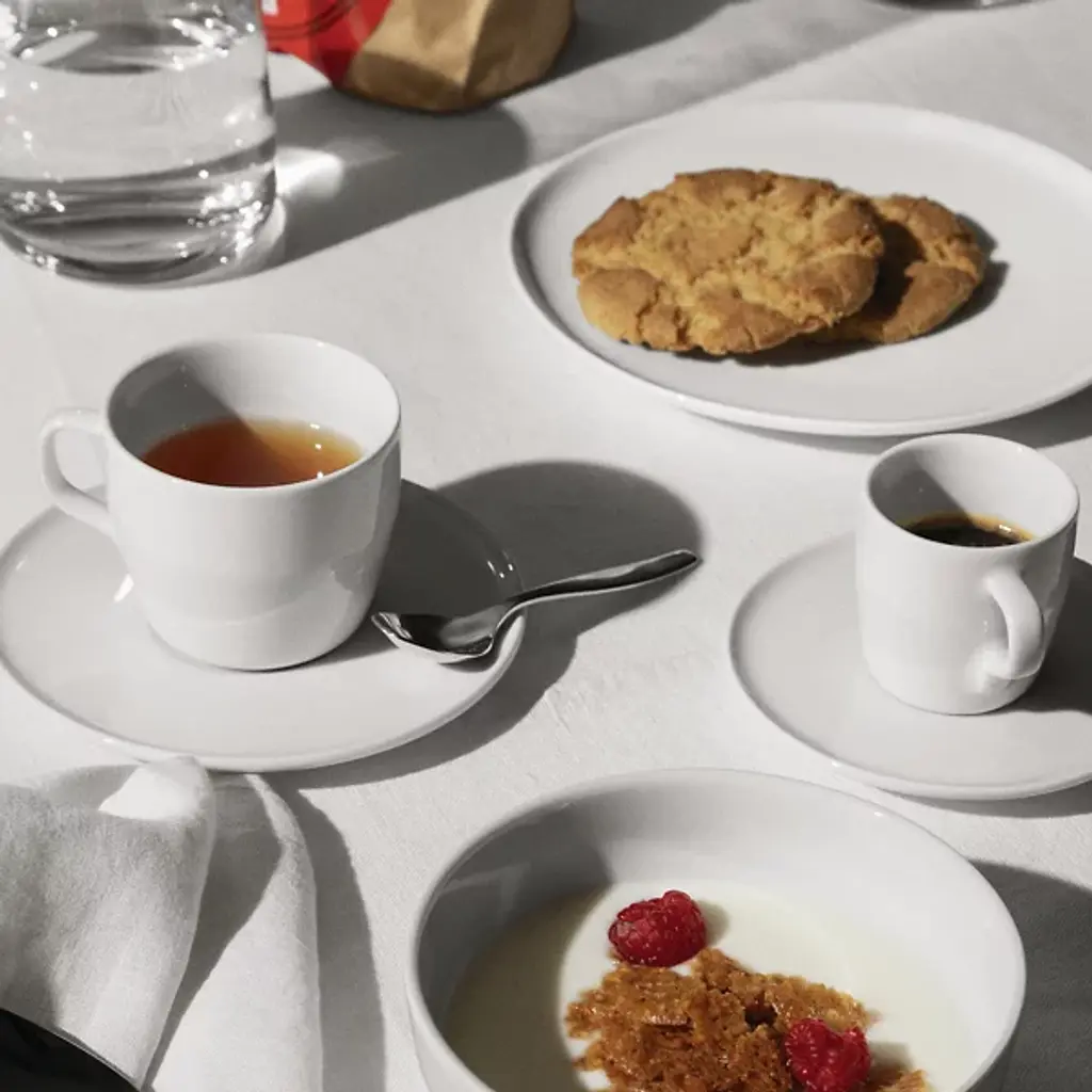 The Itsumo 4 Piece Mocha Cup and Saucer Set from Alessi is distinguished by its clean lines and essential shapes. Designed by Naoto Fukasawa, a key design feature is the thin, obtuse-angled rim, known as "Donkaku" in Japanese. This subtle detail not only enhances the cup's visual appeal but also adds a tactile element, making it a pleasure to hold and use. Fukasawa's focus on this minor aspect transforms the cup into a refined and elegant object, perfect for any coffee lover.