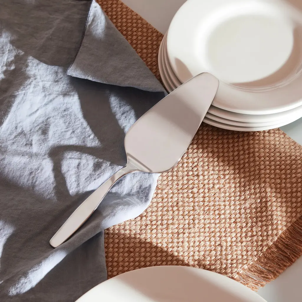 From birthdays to weddings, the Itsumo Cake Server offers an elegant solution to serve delicious cake. This steel cake server is part of the Itsumo collection, which Naoto Fukasawa designed with stylish curves that reference obtuse angles, or “donkaku” in Japanese. Rounded on all sides, the Itsumo cake server is perfect for even more delicate cakes. The curved handle is comfortable to hold, offering a great grip at the same time. Crafted from high-quality, 18/10 stainless steel, this cake server is durable, easy to clean, and features a polished finish. Dessert spoons, teaspoons, forks, and knives from the same collection are also available.
