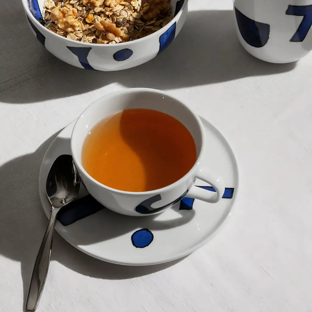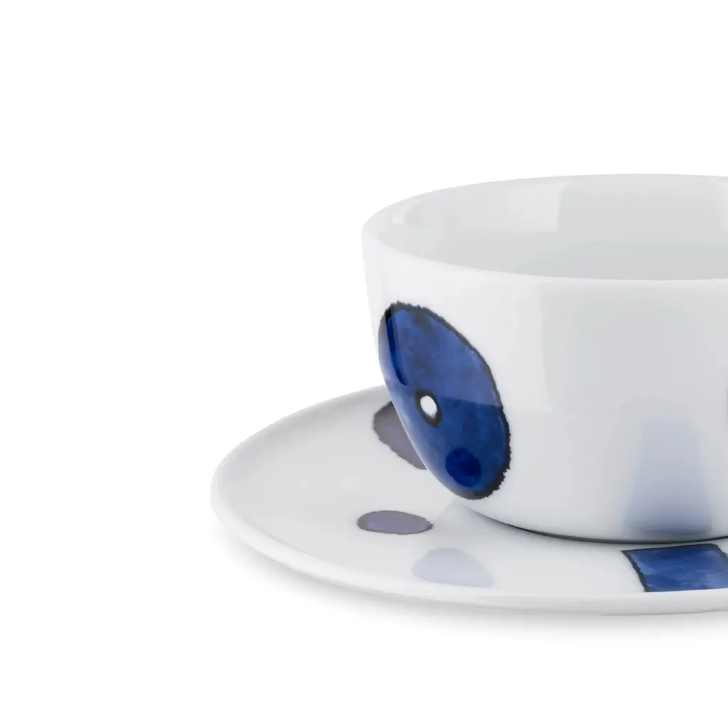 The art of serving tea develops a Japanese flavor with this set of Itsumo Teacups with Saucers, the Yunoki Ware edition. Designed by Naoto Fukasawa, this series explores the elegance of soft curves and obtuse angles, but this version also brings art into the mix. The set features decorations created by artist Samiro Yunoki, who used bright and darker shades of blue to brings abstract shapes to life. Manufactured from premium quality porcelain, these teacups and saucers are meant to be a part of your tea drinking rituals for many years to come. The set includes 4 teacups and 4 saucers, making it perfect as a housewarming gift. Coffee cups, mugs, and other plates from the same collection are also available.