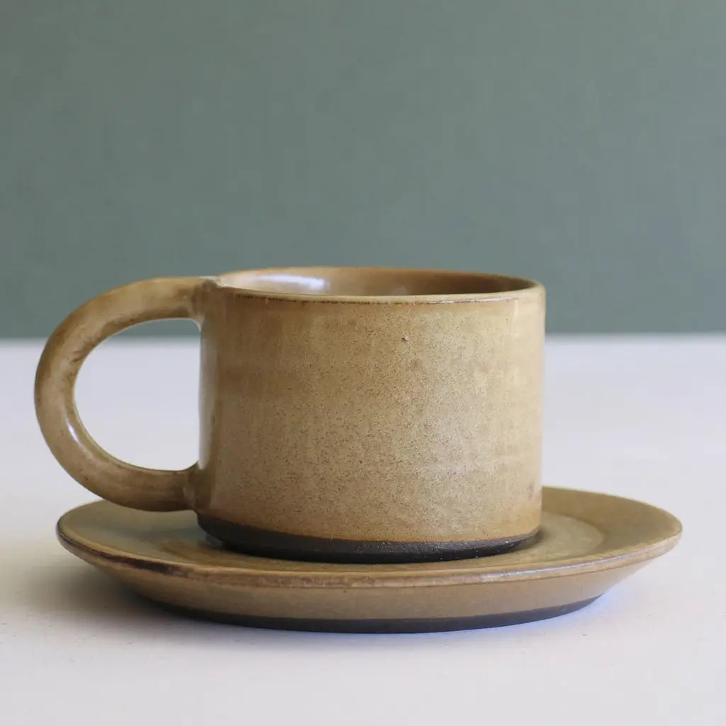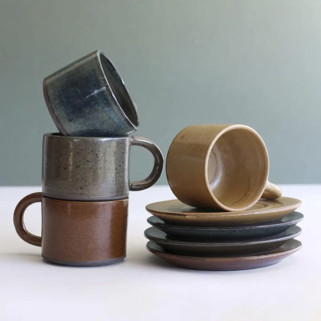 A sophisticated ivory glaze - non-toxic and lead-free - envelops this clean-lined set of 4 espresso cups and its coordinated saucers, both fashioned of black stoneware and deftly crafted by hand. Entirely unique, each piece flaunts unrepeatable details stressing its artisan charm. Different color options and a tea cup counterpart are also available for an elegant and coherent setting.