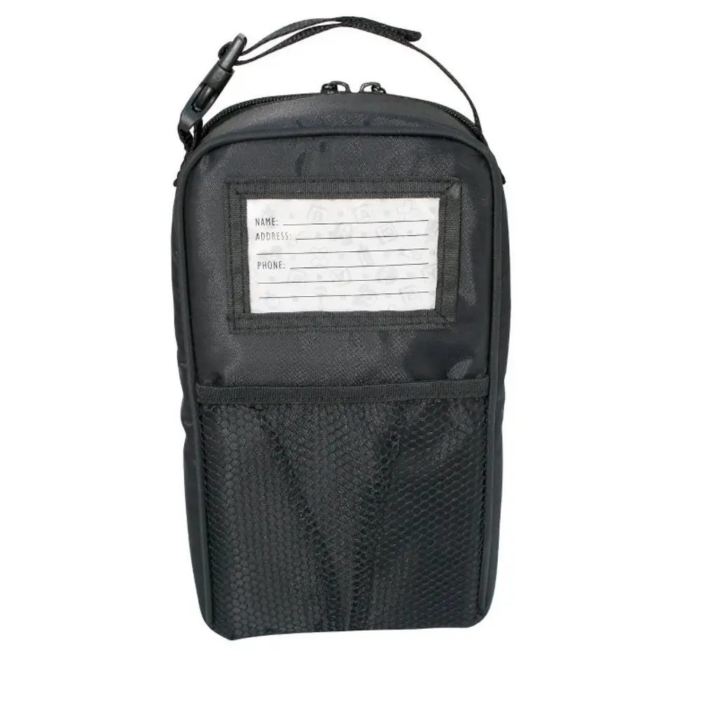 The Pack N Protect Tote surrounds glass bottles and food jars with thick padding for protection and insulation. Padded bumper shelves easily adjust to hold multiple combinations of 4 9 ounce. bottles and food jars. The Pack N Protect is fully insulated and features an interior mesh pocket to hold utensils or an ice pack. The exterior mesh pocket holds bib, wet wipes or pacifiers. Also includes ID card in clear ID card pocket and an adjustable buckle strap to attach to strollers or diaper bags. The Pack N Protect's sleek styling makes it compact to fit in a diaper bag or travel bag. Meets CA Prop 65 and CPSC standards.