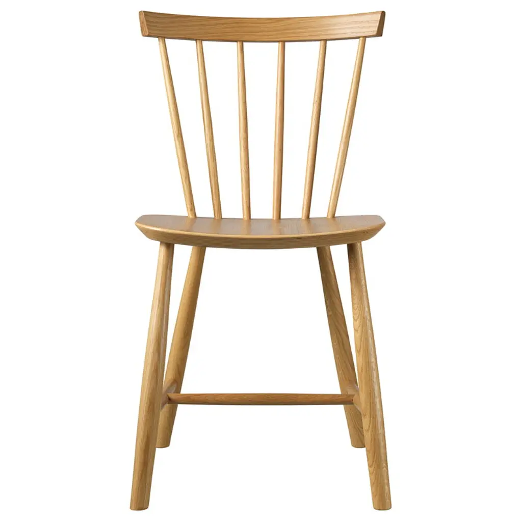 FDB Møbler's J46 chair is a Danish design classic by Poul M. Volther from 1956. When first released, J46 was a fresh contrast among the typical, heavier dining chairs of its age. Made of solid beech, the J46 chair combines a V-shaped spindled backrest with a wide, comfortable seat. The lightweight chair will suit dining tables of various different styles, and it also makes a characterful centerpiece in other surroundings.