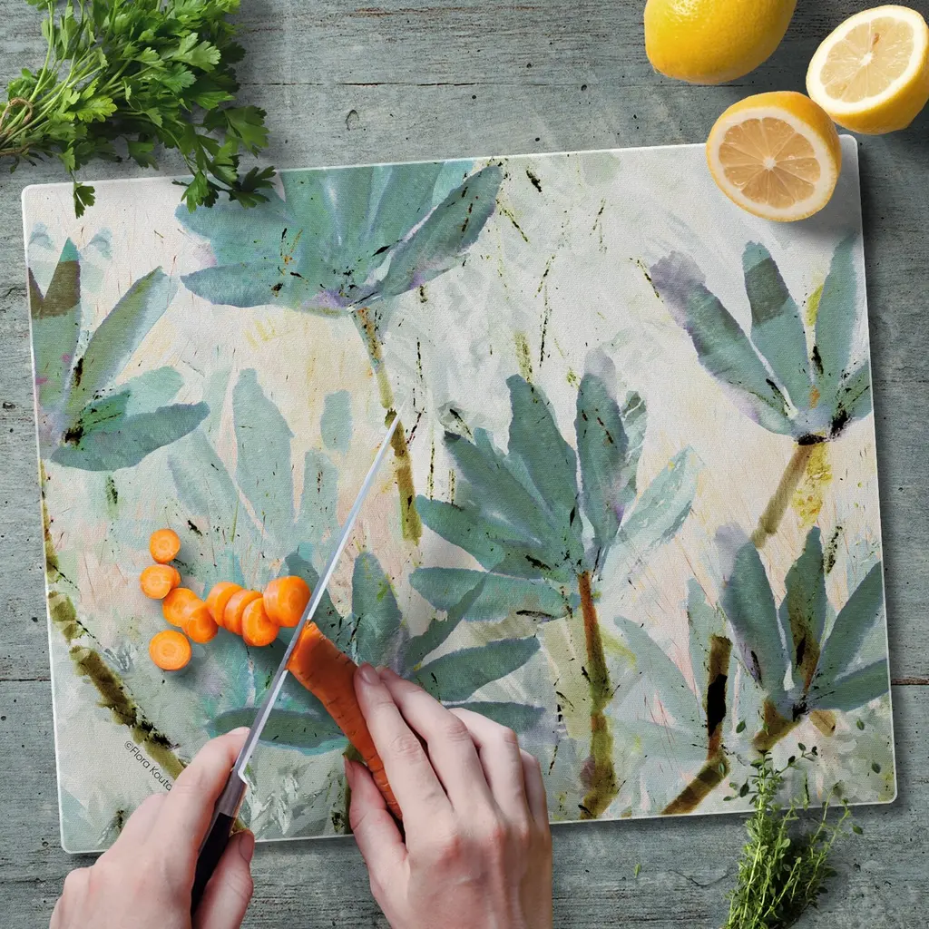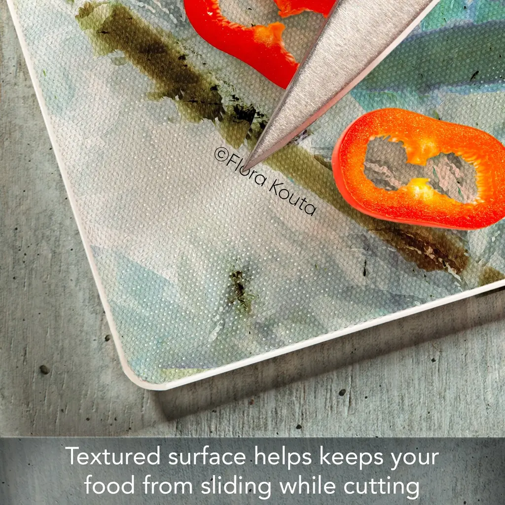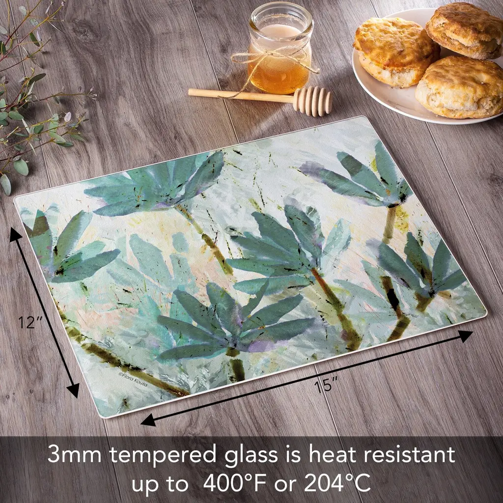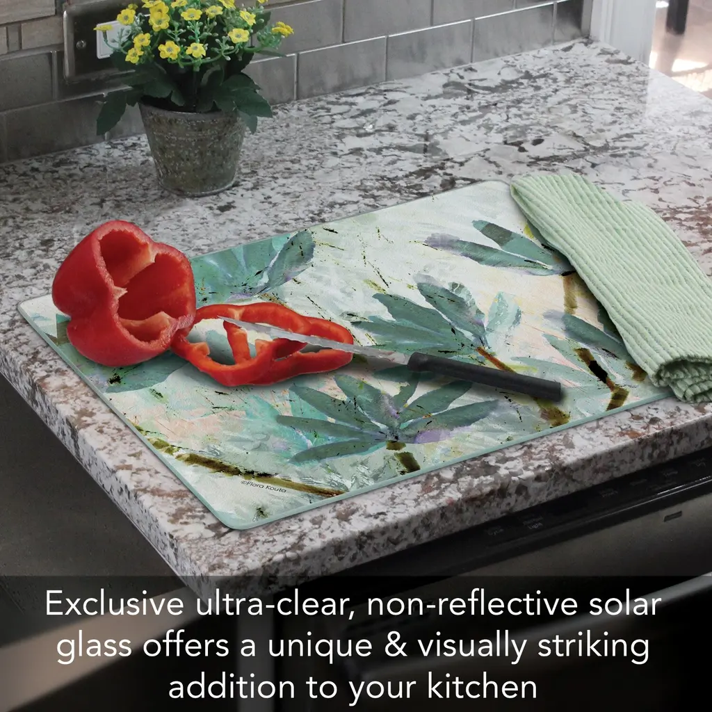 Jade Botanical Heat Tolerant Tempered Glass Cutting Board 15” X 12” Made In The Usa Dishwasher Safe Serving Board - Multi