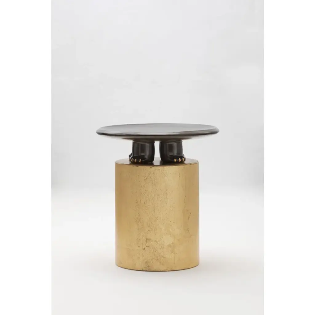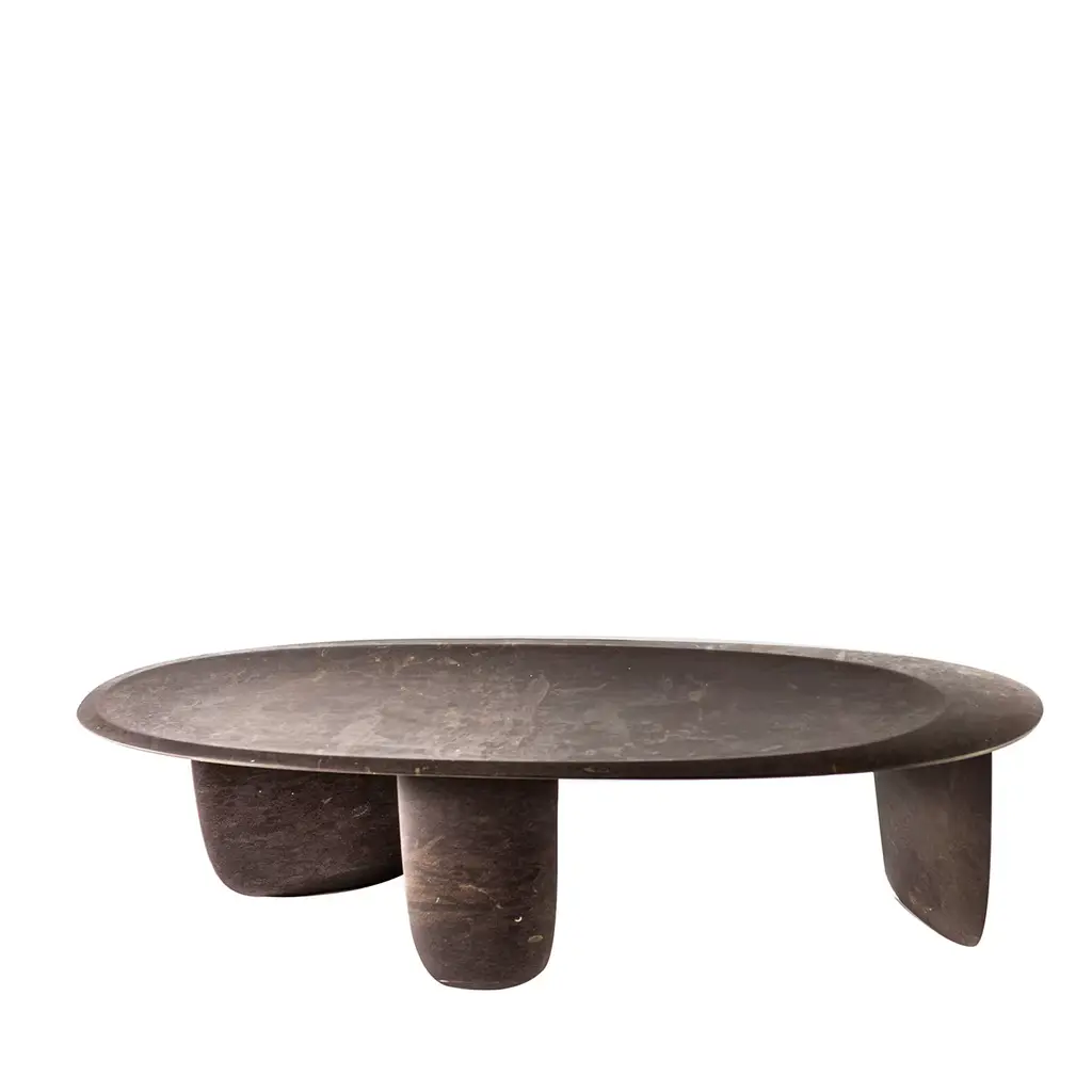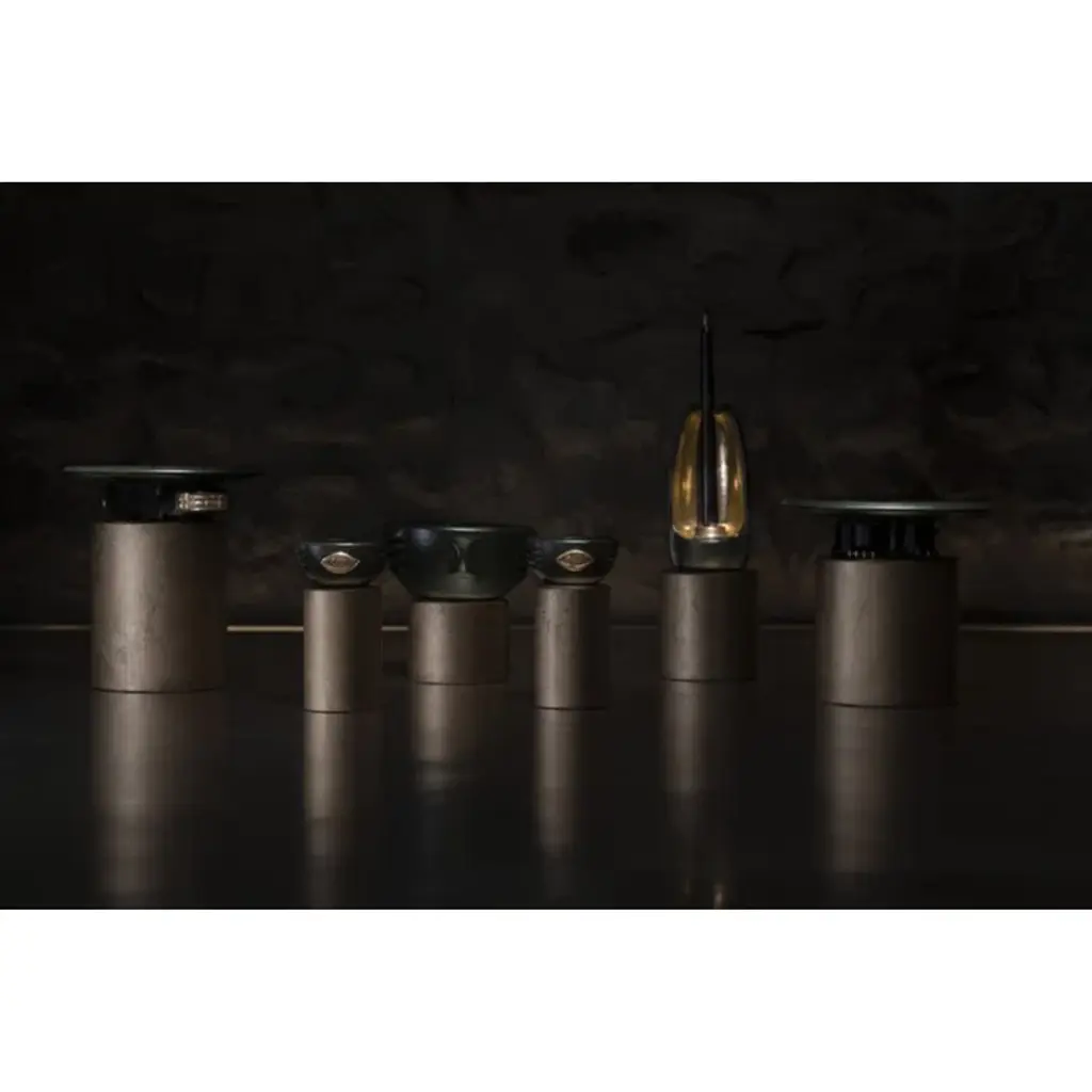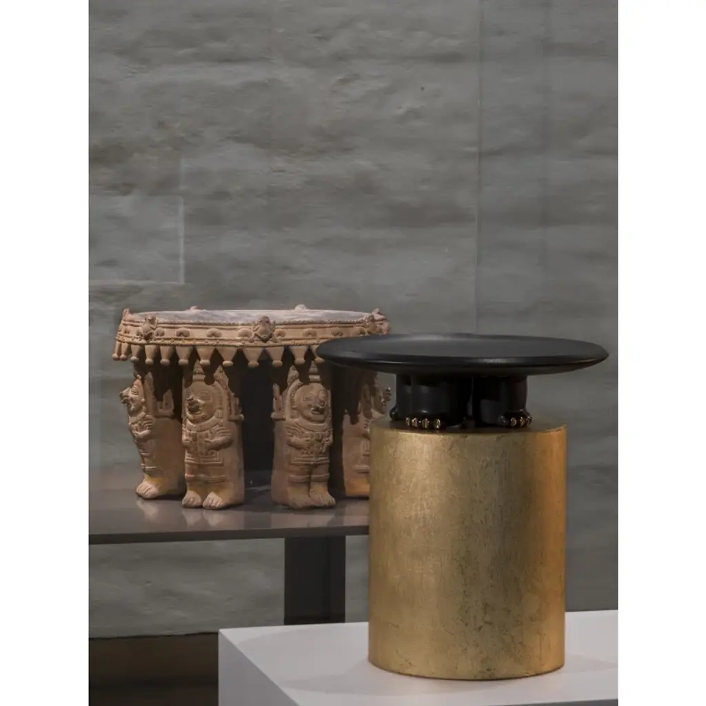 Decorative slip casted ceramic platter finished with a rich black or dark green glaze, highlighted with gold luster details.