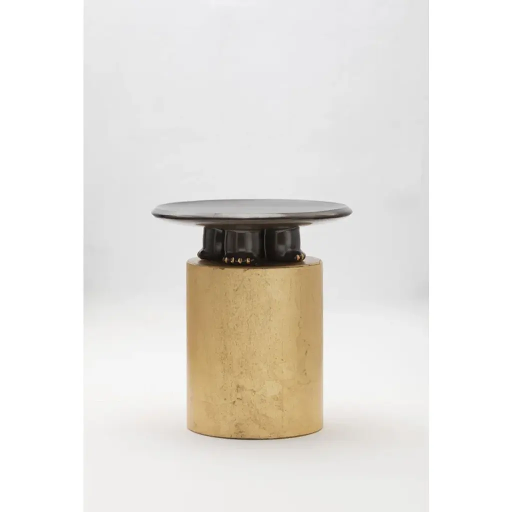 Jaguar Decorative Ceramic Platter In Dark Green Glaze With Gold Luster Details, By Andean, In Stock