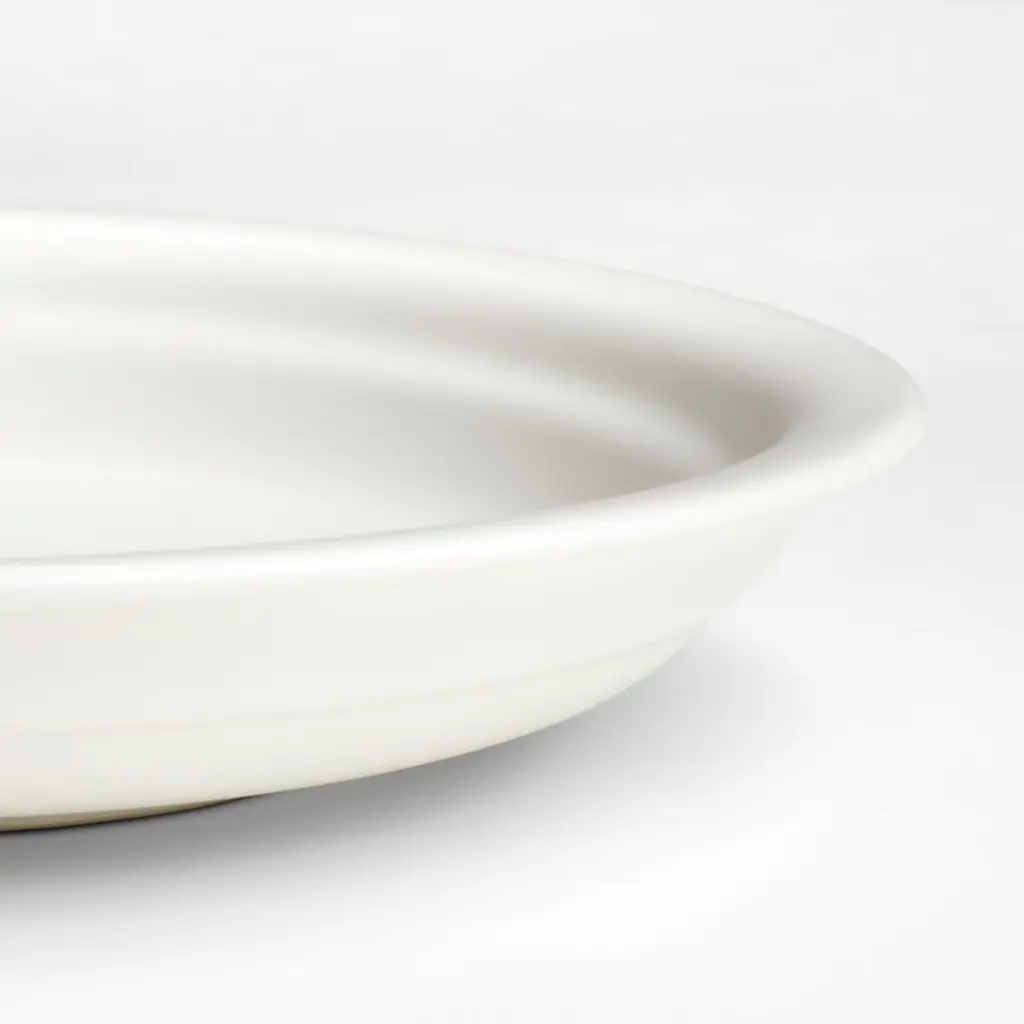 Flip, stack, serve and feast. Artist James Lewis designed this versatile dinnerware collection just for us, inspired by handmade pieces from his California studio. Glazed creamy white, this plate is ideal for elegant dinners and everyday lunches. The ingenious dinner plate also pairs with the Jamesware low bowlinner ridges and broad rims ensure the two fit together snuglywith both pieces serving as base or lid. Combine the plate with other gorgeous dishes from our modular, small-batch ceramics collection to expand the stacking and serving possibilities.