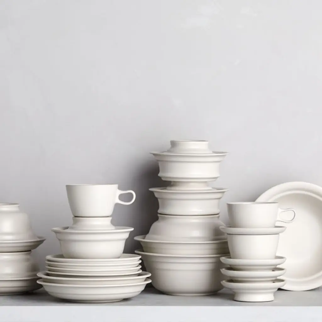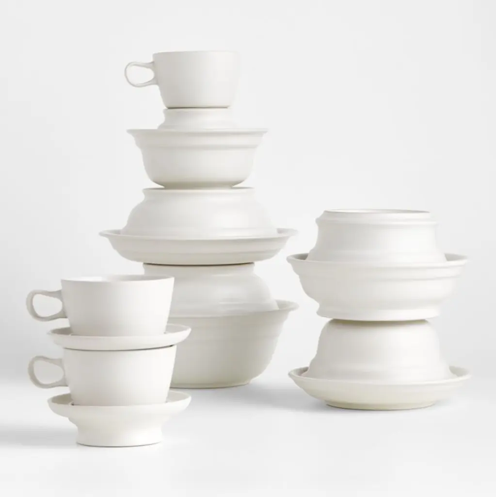 Flip, stack, serve and feast. Artist James Lewis designed this versatile dinnerware collection just for us, inspired by handmade pieces from his California studio. Glazed creamy white, this plate is ideal for salads, sandwiches and sides. The ingenious plate can also serve as a lid for the Jamesware cereal bowl or side dish, and either of those pieces can top this bowl as a lid. Interior ledges and broad rims ensure pieces fit together snugly. Combine the salad plate with other gorgeous dishes from our modular, small-batch ceramics collection to expand the stacking and serving possibilities.