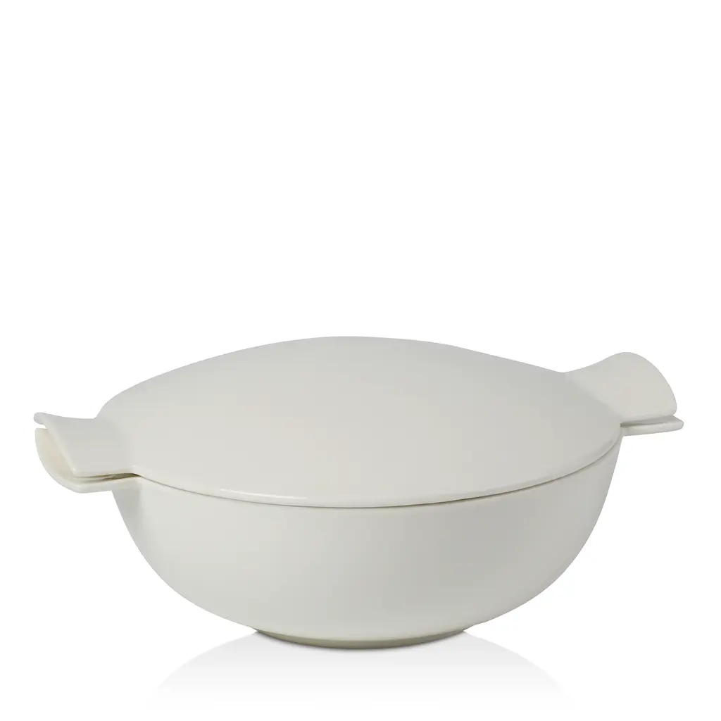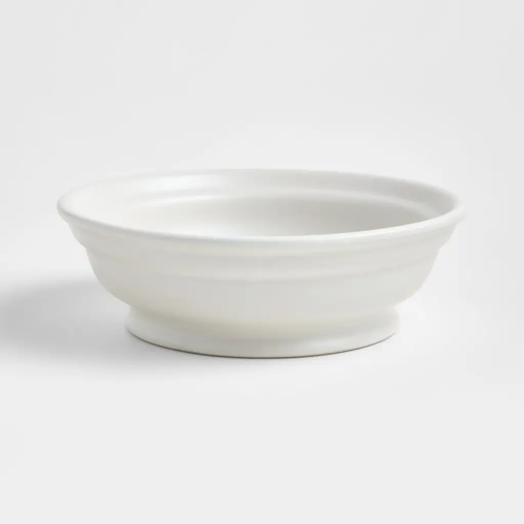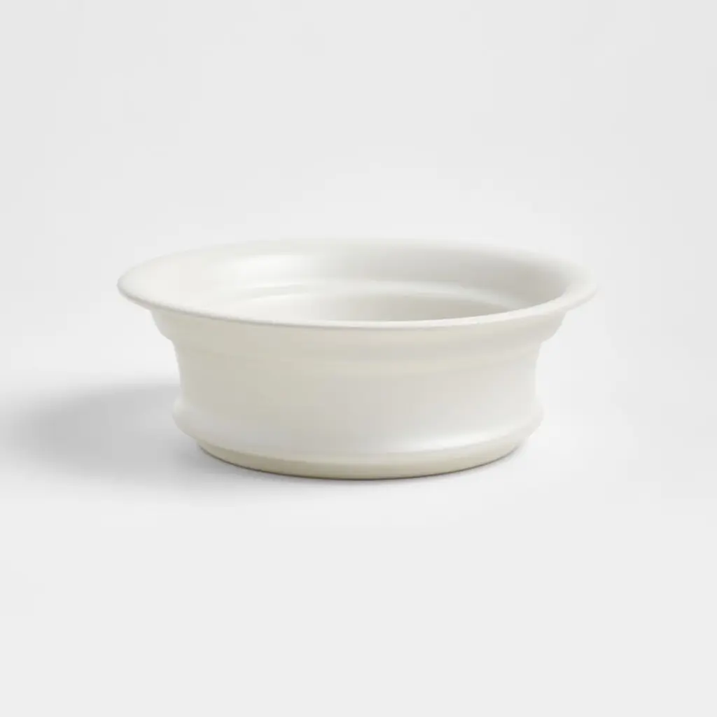Flip, stack, serve and feast. Inspired by handmade pieces from his California studio, artist James Lewis designed this versatile dinnerware collection just for us. This ingenious set based on the North African tagine pairs two small-batch ceramic pieces glazed creamy white. Top the low bowl with the pedestal-base cereal bowl to keep bread rolls, roasted vegetables or grilled tofu warm. Flipped over, the deeper bowl serves sides, soup or rice with the low bowl as a lid. Interior ridges and broad rims ensure the bowls fit together snugly. The Side Dish combines with other gorgeous pieces from our modular Jamesware collection to expand the stacking and serving possibilities.