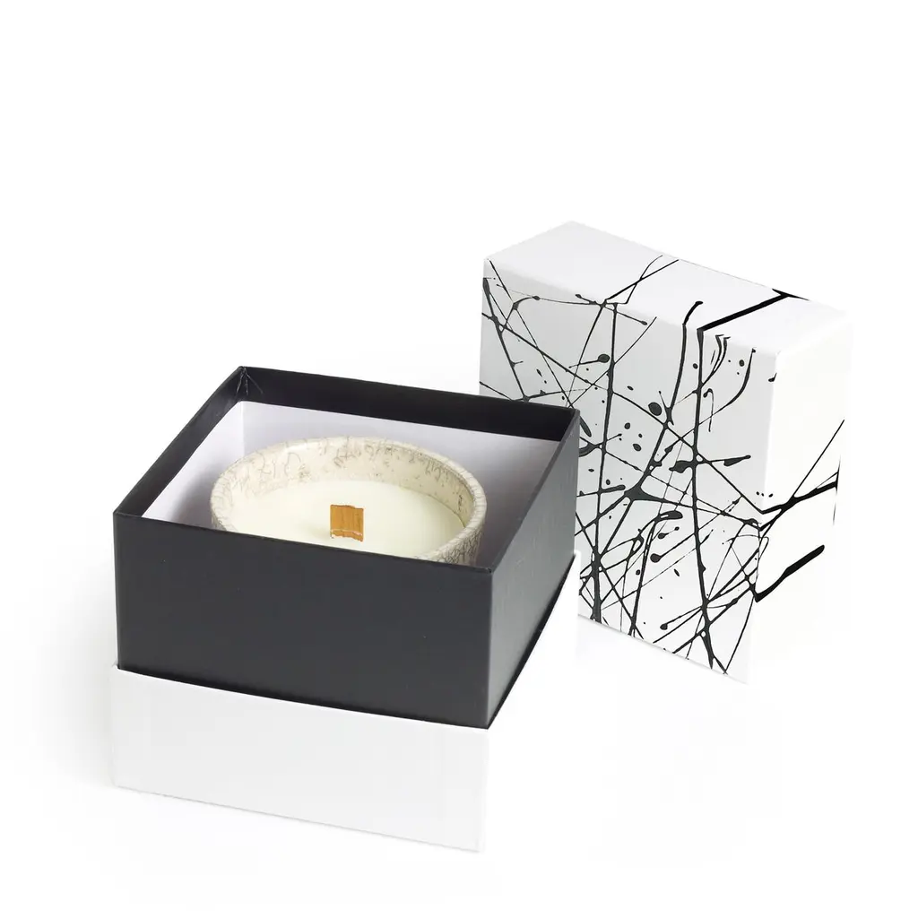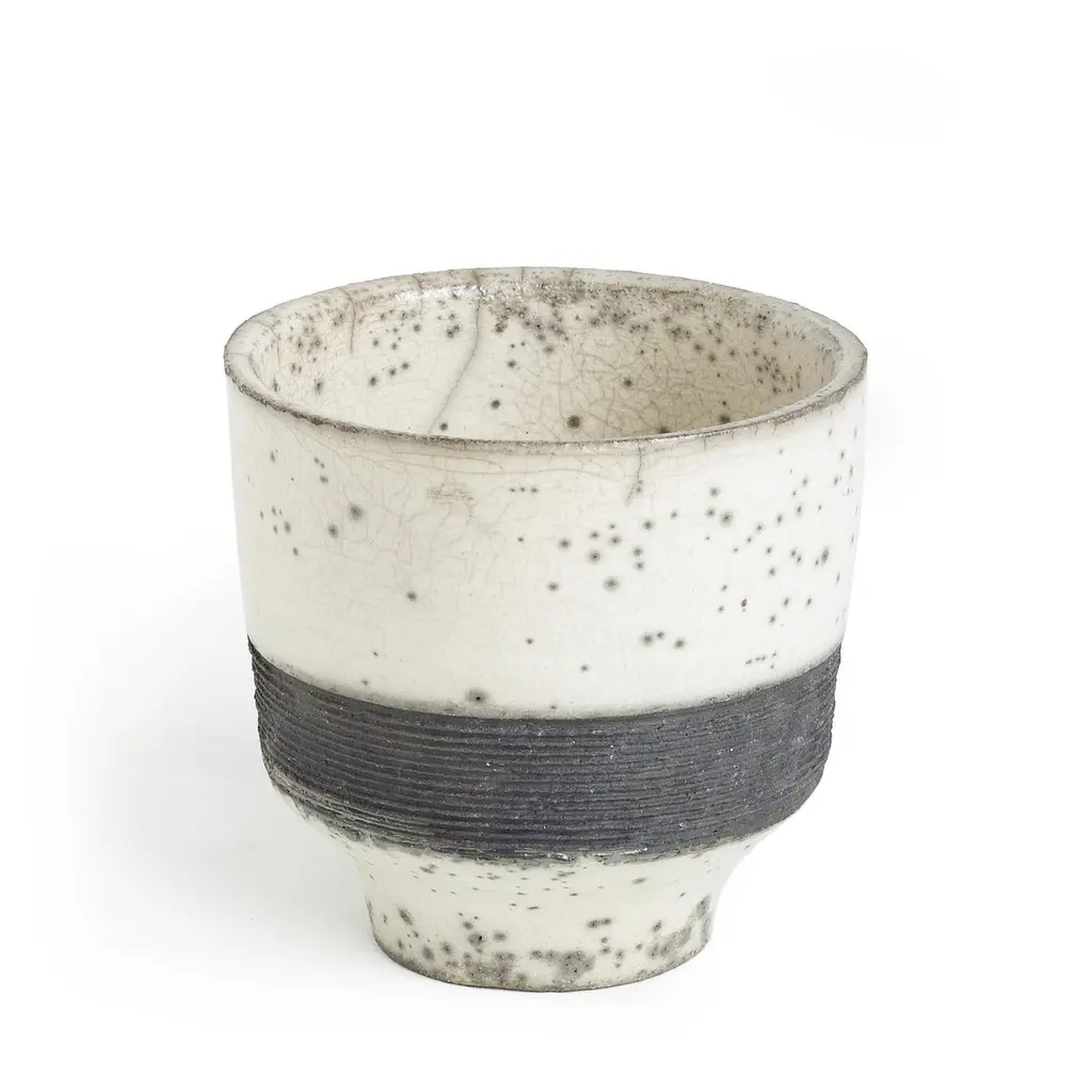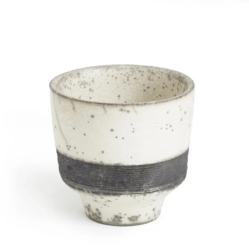 Komerobi, in Japanese, means: " the sunlight that passes through the leaves of the trees ". This cup by its extremely clean design is a reminder of the zen essentiality and the use of the cup for its most sacred purpose during ceremonies. Featuring a wooden wick, that enables the flame to expand itself also horizontally and with a sound reminding the crackle of the fire. Citrus top notes mixed with Ginger, Almond, and Spices heart notes give this fragrance an irresistible appeal. A black burnt Raku band and its raku crackle effect define this cup design.Scented Wax:Top Notes: Orange, Mandarin, LemonHeart Notes: Ginger, Coffee, Almond, PepperBase Notes: Vanilla, Cinnamon, ClovesDiameter (cm) 10 x h 9.5Filled with 300 ml of Scented Nectar WaxHandmade in Italy.