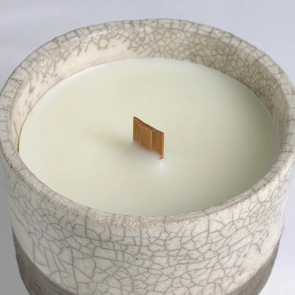 Japanese Komorebi Scented Candle Cup Black Band Raku Crackle