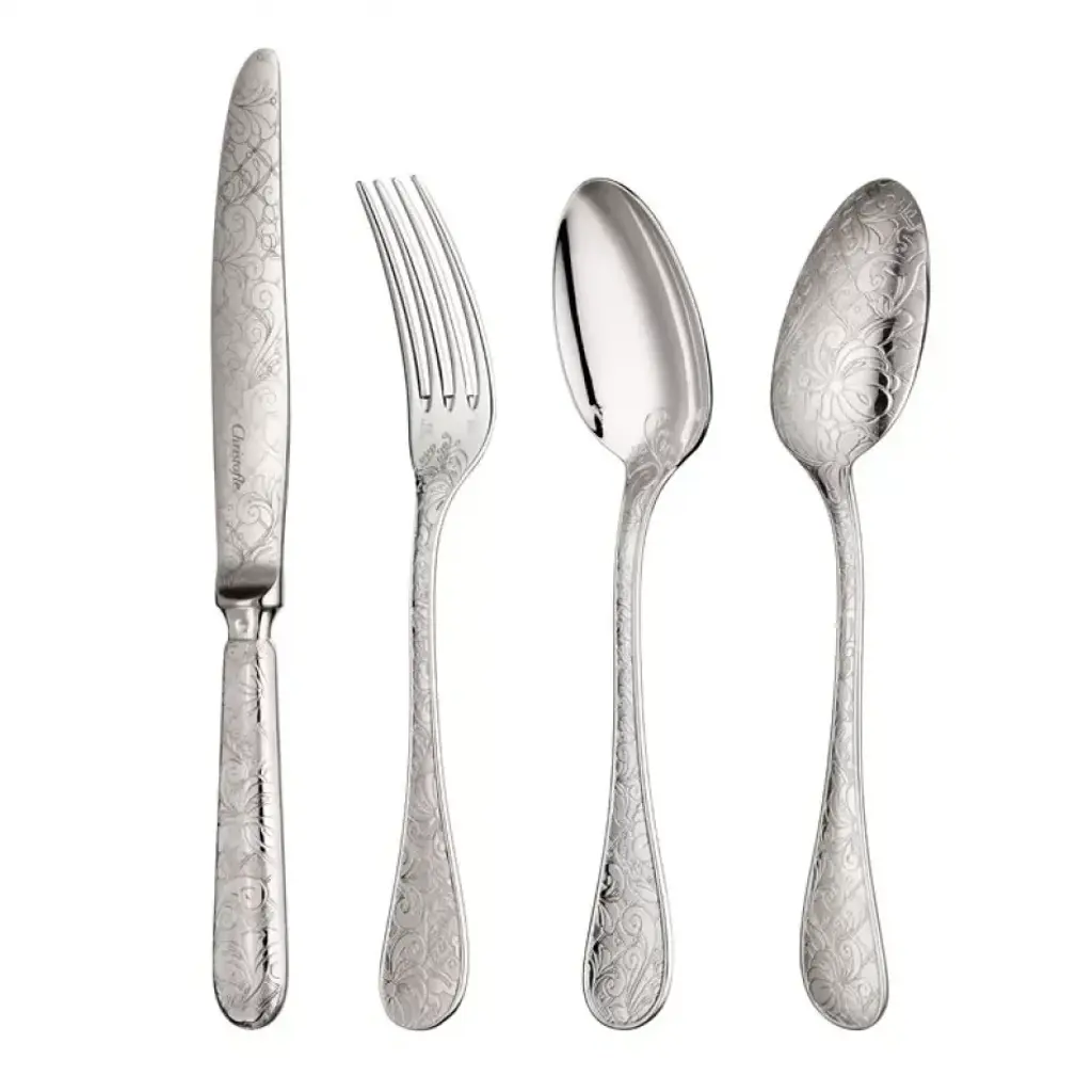 Jardin d'Eden is the latest Christofle flatware, designed by Marcel Wanders. The pattern is poetry made real. The effulgent decoration spans the entirety of the flatware in a single engraving. The interlaced leaves, flowers and curls are inspired by a lush garden, a fine tracery dancing over each piece. Thanks to its creations in silver, Christofle is a symbol of luxury and elegance. Since its founding in the mid-19th century, it has been a continous innovative force and has infused each era with a new art of living. Thus, over time, this prestigious company has revolutionized styles, techniques, and methods for the production and distribution of silver plate and the decorative arts. A player in and privileged witness to the evolution of taste, customs, and traditions, Christofle has always seen its name associated with major creative trends, renowned artists such as Man Ray or Jean Cocteau, avant-garde architects such as Gio Ponti, and modernist silversmiths such as Lino Sabattini and Christian Fjerdingsatd, as well as present-day designers such as Andrée Putman, Martin Szekely or Ora ïto. Today, as in the past, whether gracing the tables of emperors, princes, or maharajas, in palaces, on board the Trans-Siberian Railway, Orient Express, or transatlantic ocean liners, or in the contemporary restaurants, Christofle continues to make an impression.