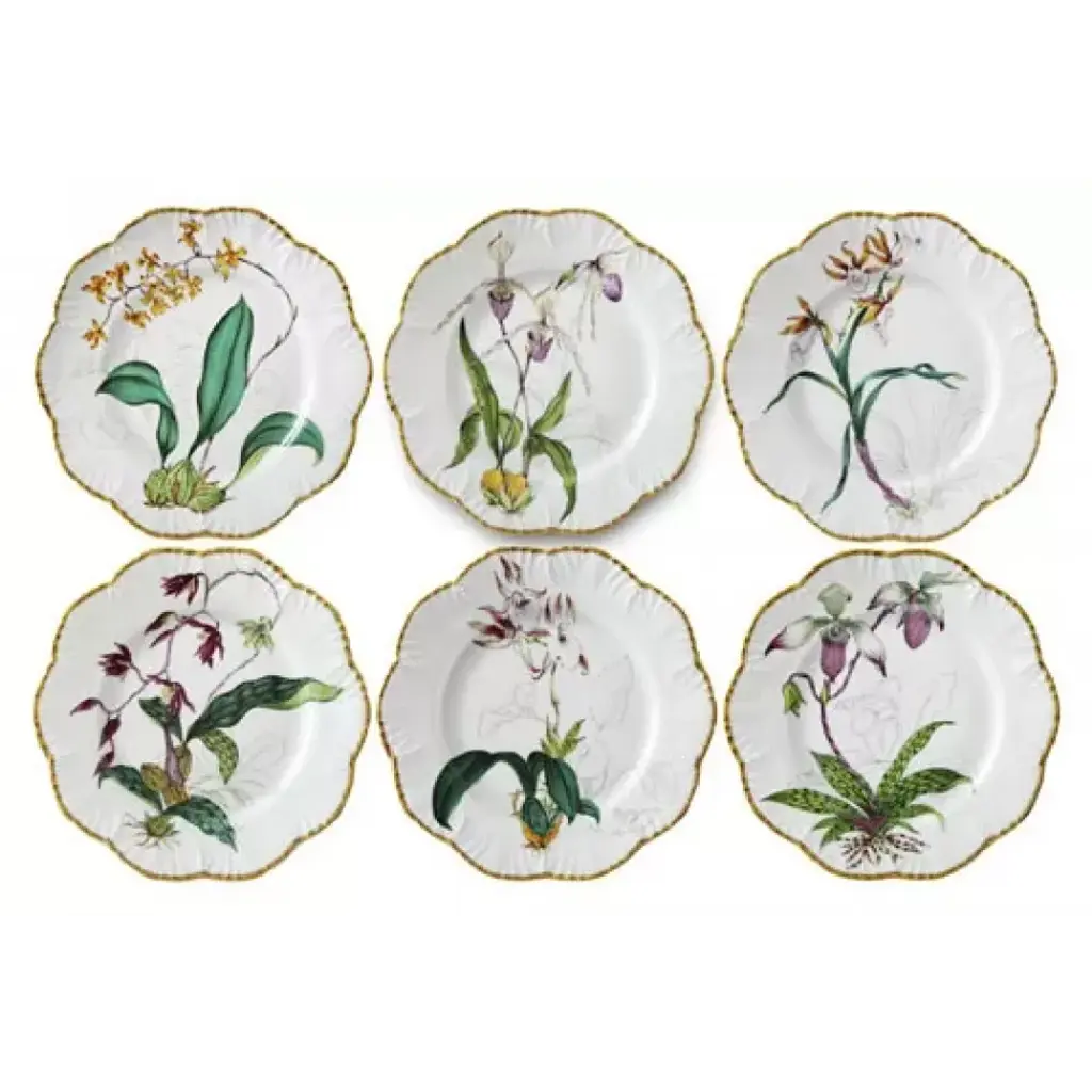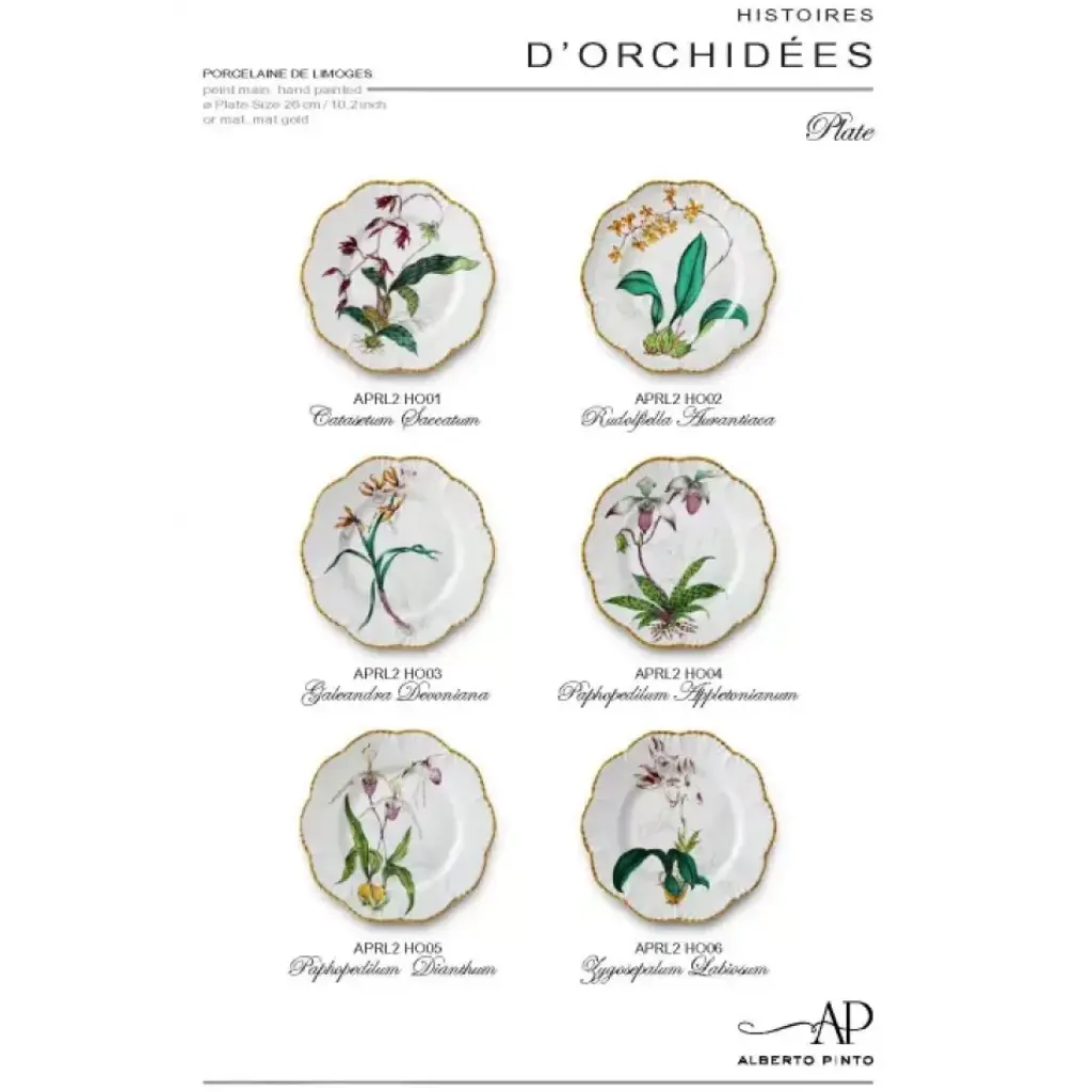 A rich bouquet of orchids adorns this chic dinnerware. Jardin D'Orchidees, french for a garden of orchids, was designed by Alberto Pinto. Finished with matte gold, it will add a beautiful layer to your dining table. One of France’s best-known interior designers, Alberto Pinto has designed not only homes but also yachts, private jets, luxury hotels, and restaurants. His work has been called the "haute couture of interior decorating." His prolific creations range in style from modern to classical to Asian-inspired and floral themes, and all of them are executed superbly on Limoges porcelain to create art for your table.