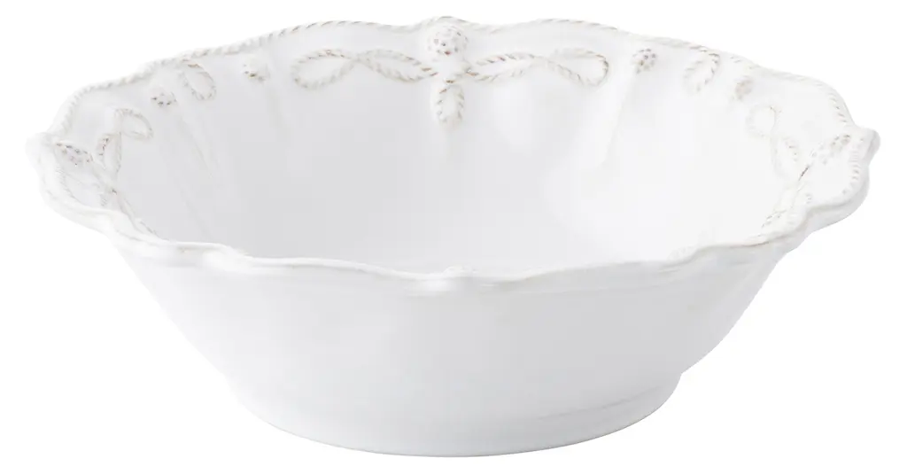 A lovely addition to any collection, this bowl is crafted of ceramic with a scalloped rim, central medallion, and versatile white finish. Made in Portugal.