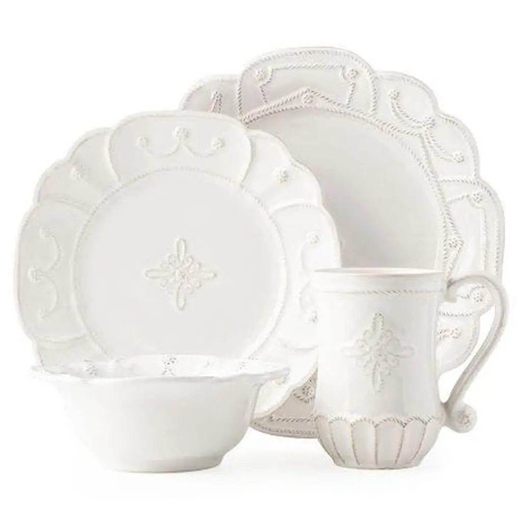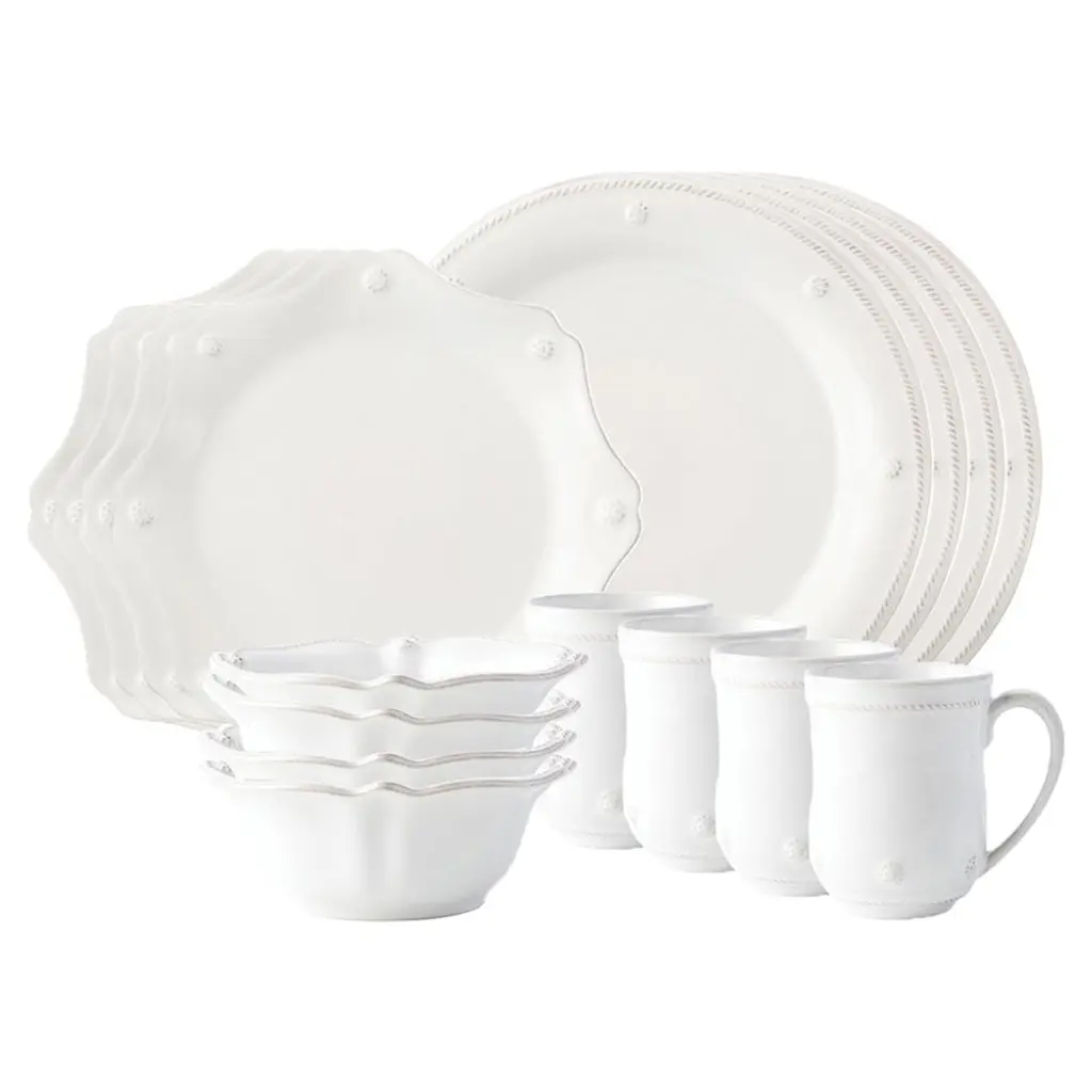 Jardins Du Monde Whitewash 16 Piece Dinnerware Set, Service For 4