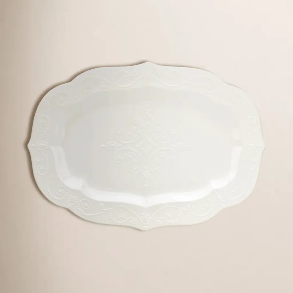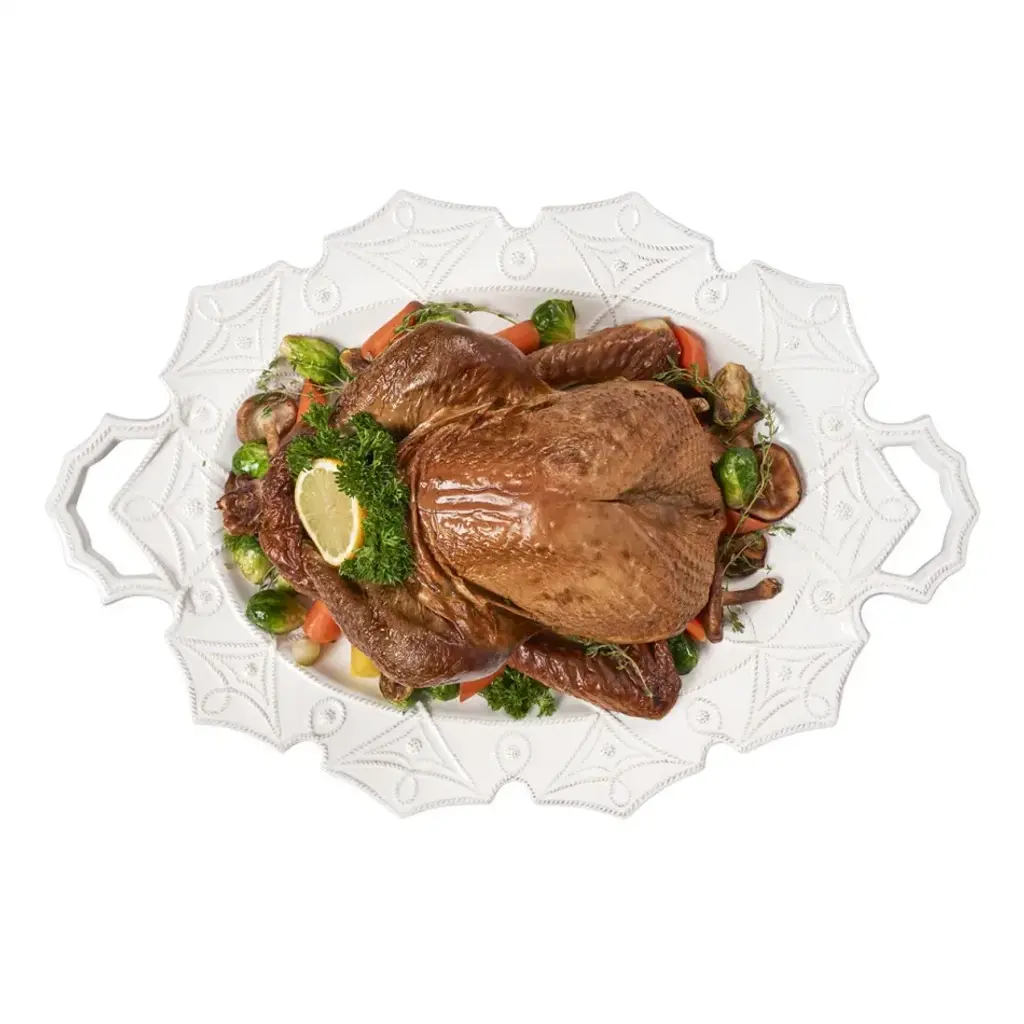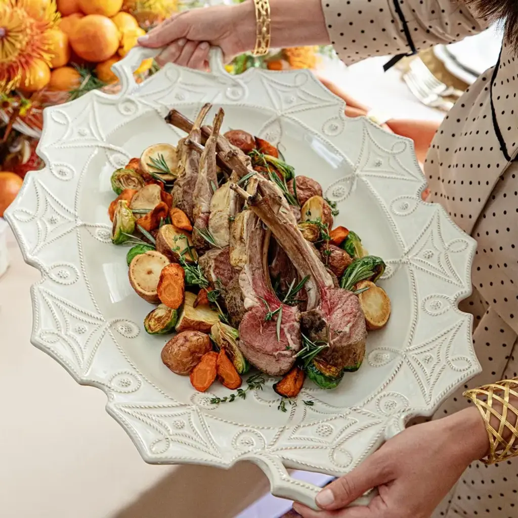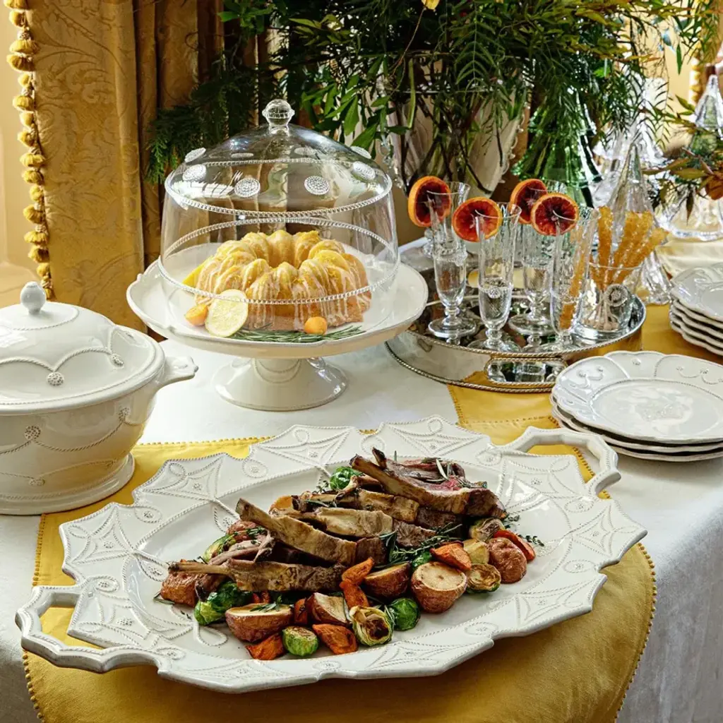 From our Jardins du Monde Collection - Elegant angularity reminiscent of the precisely ordered hedgerows of historic gardens adorn this handsome platter. Generous handles make for effortless serving of your holiday roast, though you may want to showcase this artistic piece year round in your sideboard. Based in Connecticut, Juliska is committed to bringing elegant European design into our modern homes. Since its founding in 2001, when David and Capucine Gooding began by working with artisans outside of Prague to reproduce antique Bohemian glass pieces, every piece from Juliska has shared a rich heritage spanning six centuries of European design. Juliska's creations are timeless, romantic and effortlessly chic.