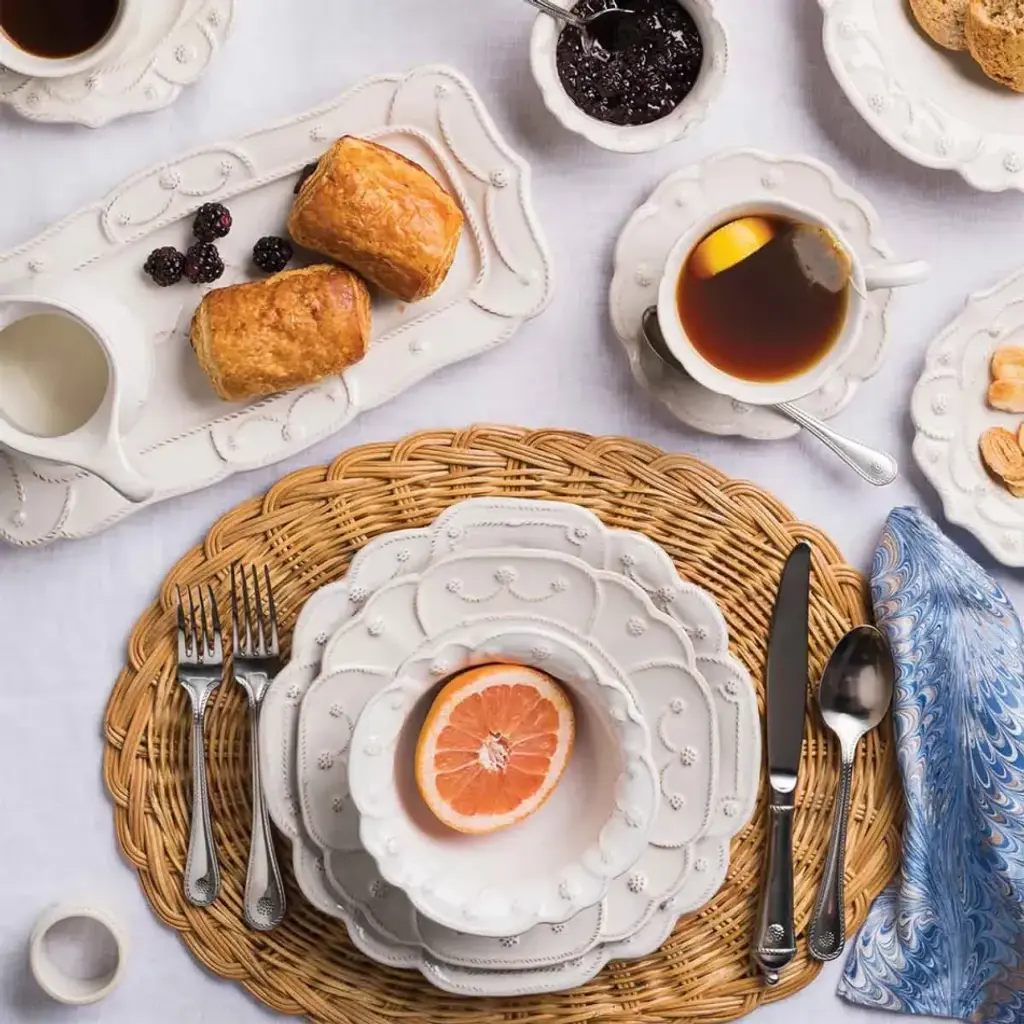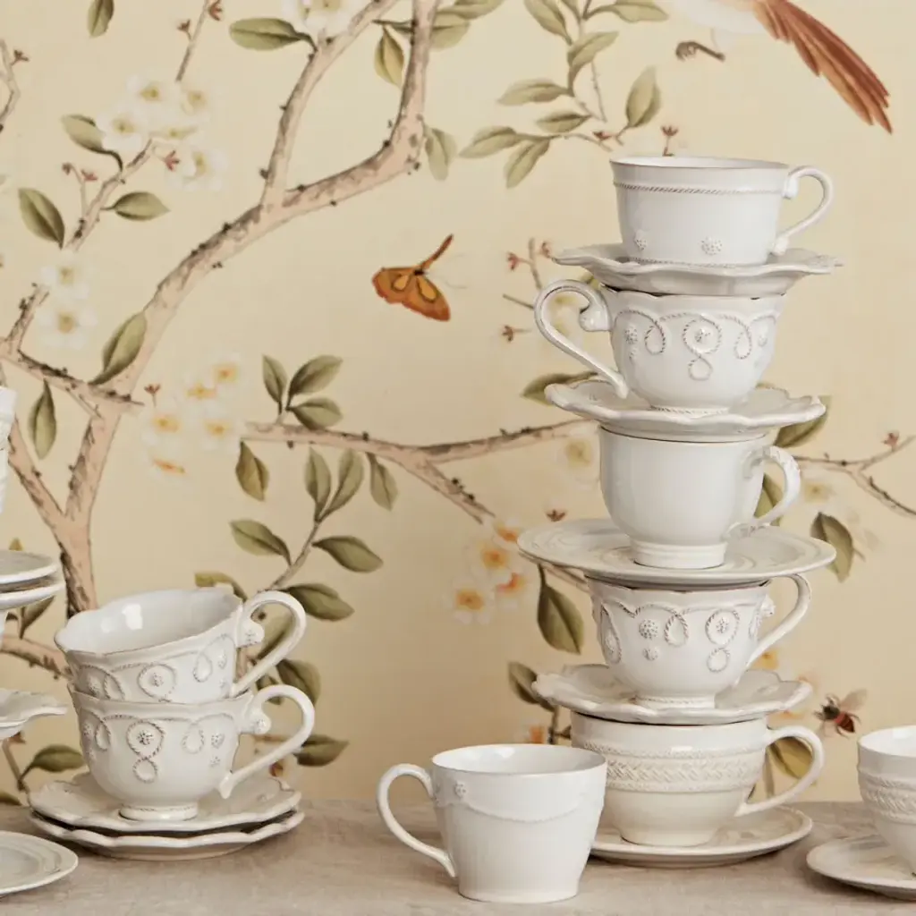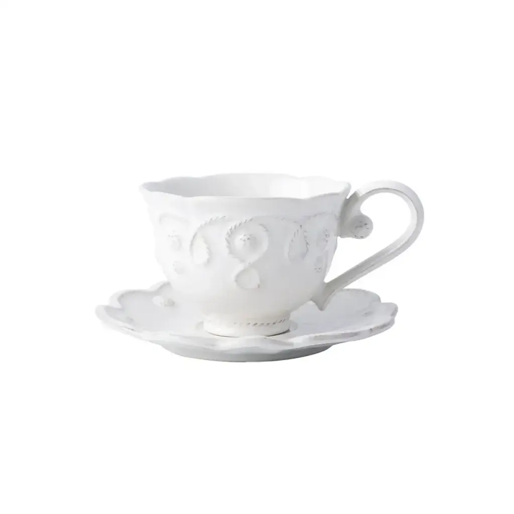 From our Jardins du Monde Collection - Is there anything more fetching than the combination of tea and castle gardens? That in mind, we dreamed up this graceful cup replete with scrolls and scallops for a fresh look that is also subtly regal. Based in Connecticut, Juliska is committed to bringing elegant European design into our modern homes. Since its founding in 2001, when David and Capucine Gooding began by working with artisans outside of Prague to reproduce antique Bohemian glass pieces, every piece from Juliska has shared a rich heritage spanning six centuries of European design. Juliska's creations are timeless, romantic and effortlessly chic.