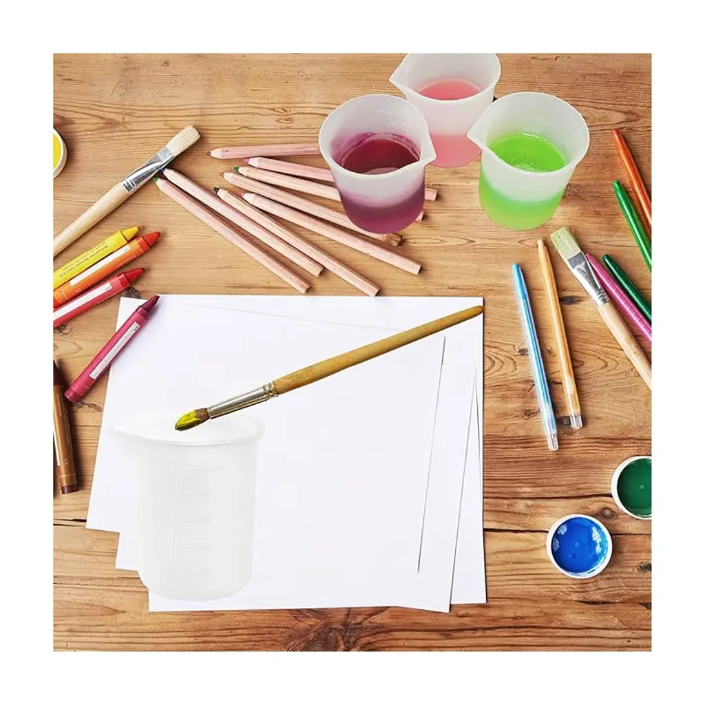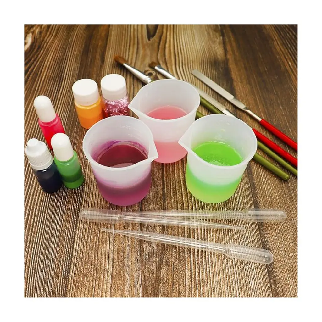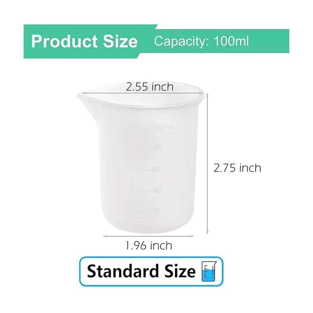 ★【Multipurpose Silicone Measuring Cups】:These nonstick silicone measuring cups are not only applied to lab, education demonstration, epoxy resin mixing, slime, clay, paint, craft, molding, casting, stain, jewelry making but also widely used in our daily life like kitchen and makeup ingredients precise measurements.★【QUALITY MATERIAL】: Made of grade silicone, heat resistant between -40°F and 446°F. BPA free, non toxic flexible,non-skid, nonstick, waterproof, heat-resistant,non-fading, non-staining,durable reusable, not easy to deform or tear up,great for casting tools kit collector★【100ml Size Silicone Measuring Cups】: Height: 2.75 inch, Bottom Diameter: 2.16 inch adapts to different environments and effectively help keep your table clean.★【Human-friendly design】: Excellent and smooth touch, the long and pointed diversion port to make the pouring easier and more accurate your work on it easier.★【ATTENTION】Do not use sharp objects mixing or heat gun when using a silicone measuring cups, It will damage the measuring cups. the bubble can be removed after standing for 15 minutes. clear scale making accurate and easily readable, wishes you a pleasant use!