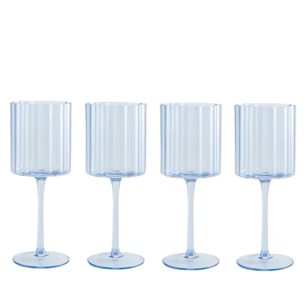 Jeanne Fitz Scalloped Rim Fluted Wine Glass, Set Of 4, 12oz, Blue