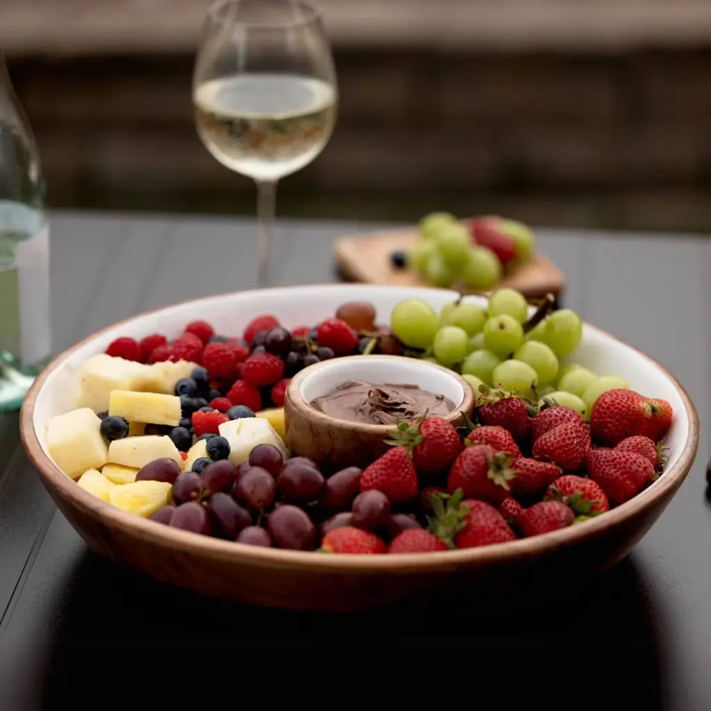 From gatherings with friends to family nights at home, you'll love how easy it is to serve up your favorite snacks with this classic set with a modern twist. The mixed material of solid acacia wood and white enamel are the essence of style for presenting dips, salsas or hummus with chips, crackers, shrimp, or veggies. This set is not only stylish but functional and easy to clean with a removable bowl. Our Wood + White Chip and Dip Serving Bowl is sure to leave a smile on everyone's face.