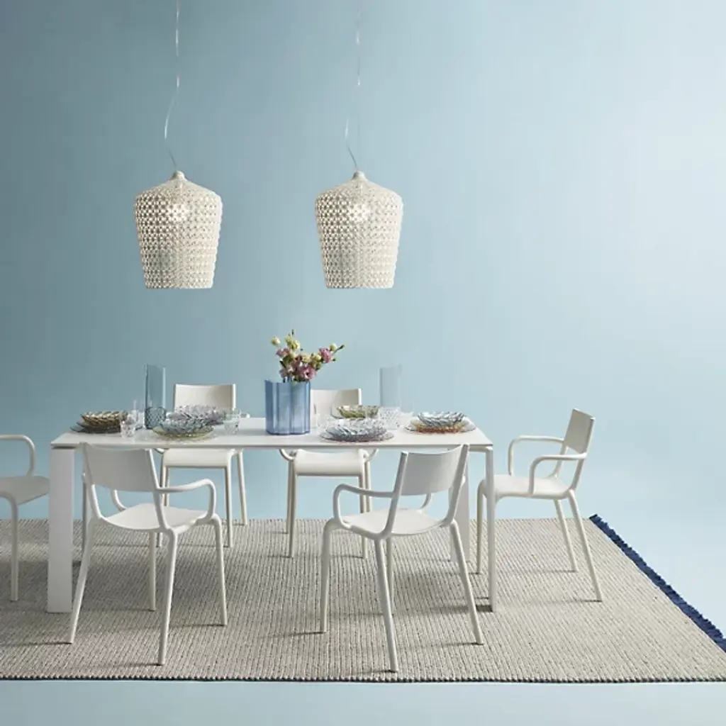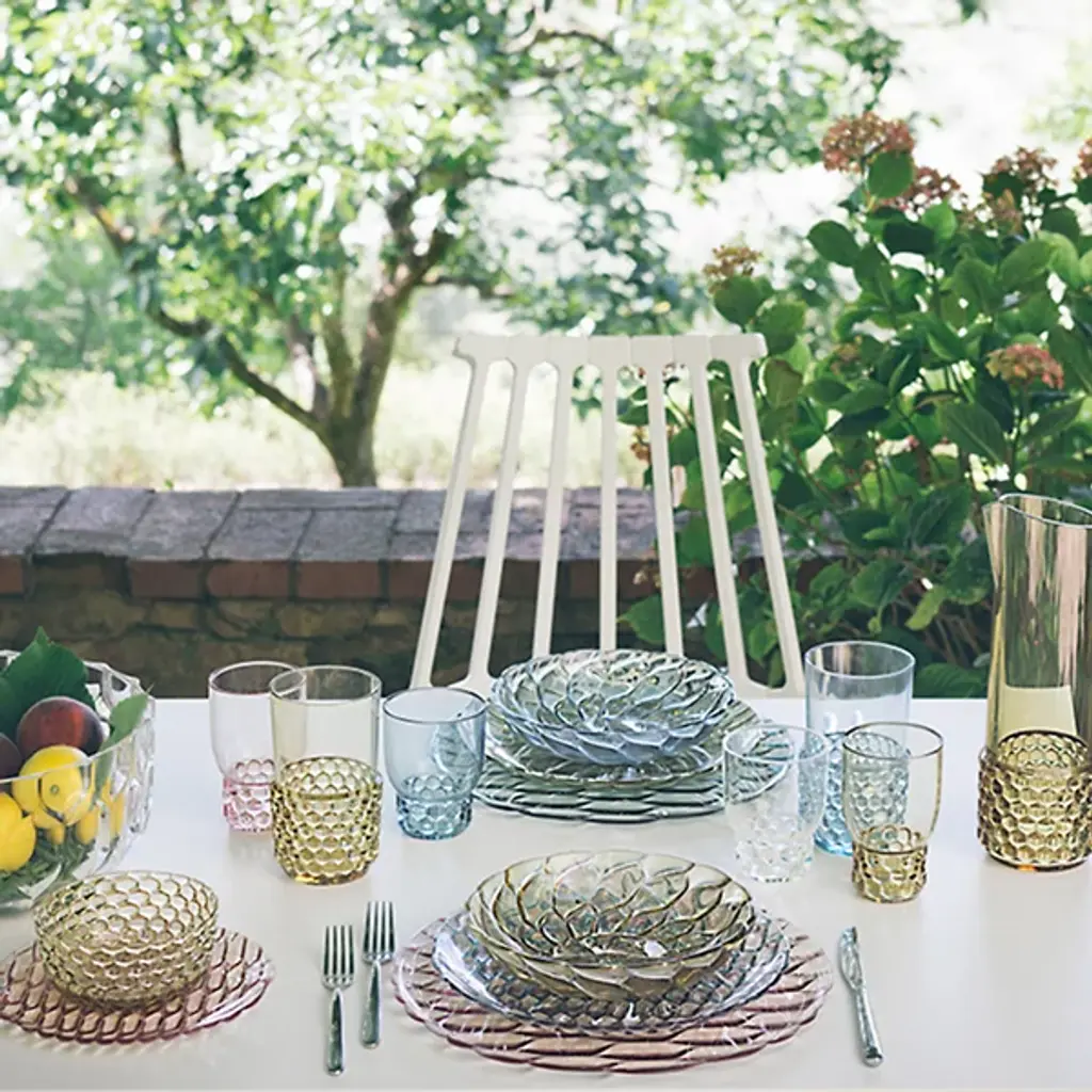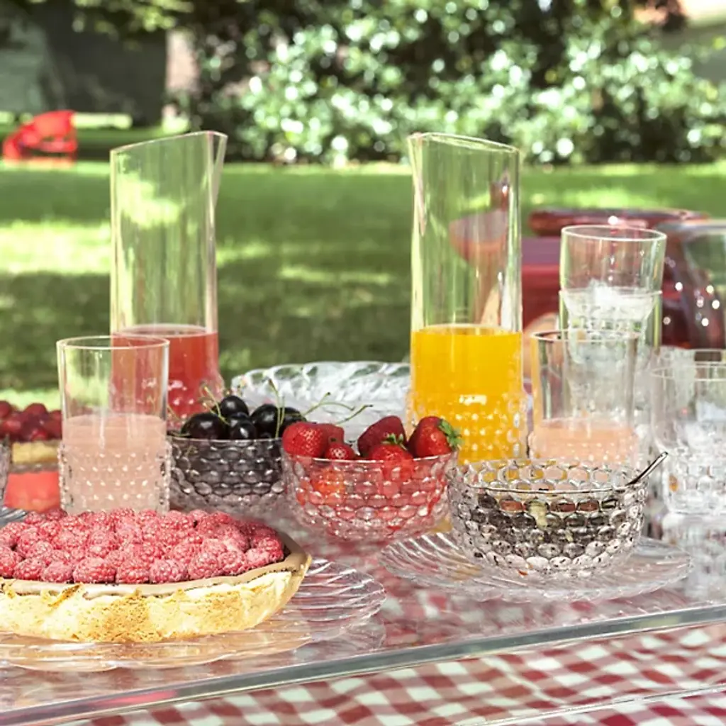 The Jellies Jug from Kartell brings practical serving to Patricia Urquiola's vintage-inspired tableware collection. Crafted from durable thermoplastic technopolymer, this pitcher showcases the distinctive jelly mold textures that make each piece in the line instantly recognizable. Light plays across the molded surface patterns, creating depth and movement whether you're pouring beverages or displaying it as a centerpiece. The food-safe construction handles both hot and cold liquids safely, while dishwasher compatibility ensures easy cleanup after dinner parties. This jug works beautifully for outdoor entertaining since the material won't crack in temperature changes or fade from sun exposure.