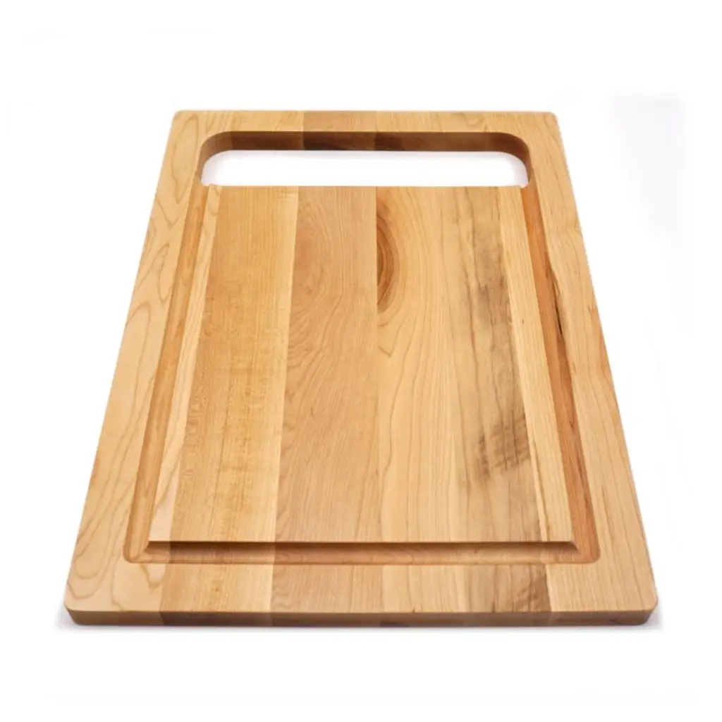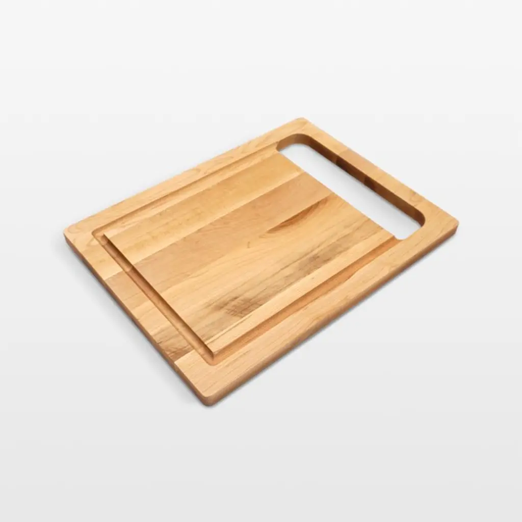 Pure maple wood shapes a large prepping, carving and serving board that offers beauty and utility. Perfect for serving an assortment of cheeses with crostini, the board is bordered by a groove that corrals crumbs. The generous handle is ideal for passing throughout a cocktail party. Or use as a carving board for meatsthe groove allows you to collect delicious juices to make sauces and gravies and the cutout handle makes it easy to carry grand roasted meats and poultry to the table for a classic presentation. A must-have for holiday entertaining, this multipurpose board makes a useful gift for the consummate host.Offering fine craftsmanship, J.K. Adams has been creating housewares since 1945.