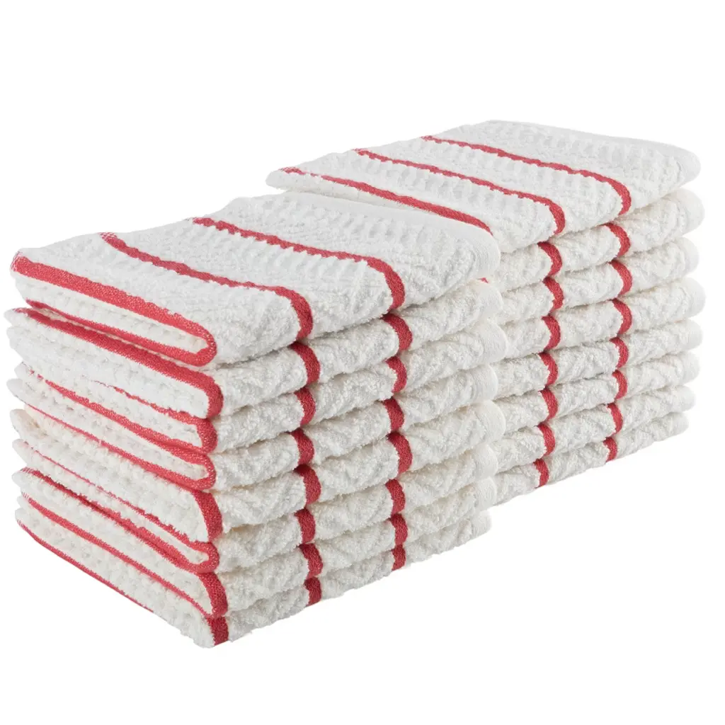 Sturdy as they are soft this set of 6 RITZ Terry Check Dish Cloths offers durable effectiveness throughout the home no matter how tall the task. Crafted with 100% cotton and featuring terry-loop construction these absorbent cloths are designed with a special woven technology that makes them perfect for drying dishes and wiping down surfaces. Convenient 12 in. by 12 in. (30 cm by 30 cm) sizing ensures these versatile cloths tackle tasks with ease and a variety of charming colors ensures they look good doing it. Machine washable for hassle-free cleaning. Set includes 6 cloths. Includes: 2 solid-colored cloths 2 dark check cloths and 2 light check cloths. Designed with a "wave" terry-loop construction featuring special woven technology. 12 in. by 12 in. (30 cm by 30 cm). Machine washable.