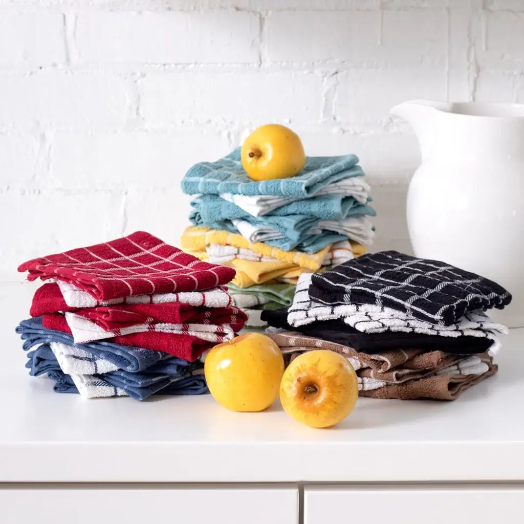 Sturdy as they are soft this set of 6 RITZ Terry Check Dish Cloths offers durable effectiveness throughout the home no matter how tall the task. Crafted with 100% cotton and featuring terry-loop construction these absorbent cloths are designed with a special woven technology that makes them perfect for drying dishes and wiping down surfaces. Convenient 12 in. by 12 in. (30 cm by 30 cm) sizing ensures these versatile cloths tackle tasks with ease and a variety of charming colors ensures they look good doing it. Machine washable for hassle-free cleaning. Set includes 6 cloths. Includes: 2 solid-colored cloths 2 dark check cloths and 2 light check cloths. Designed with a "wave" terry-loop construction featuring special woven technology. 12 in. by 12 in. (30 cm by 30 cm). Machine washable.