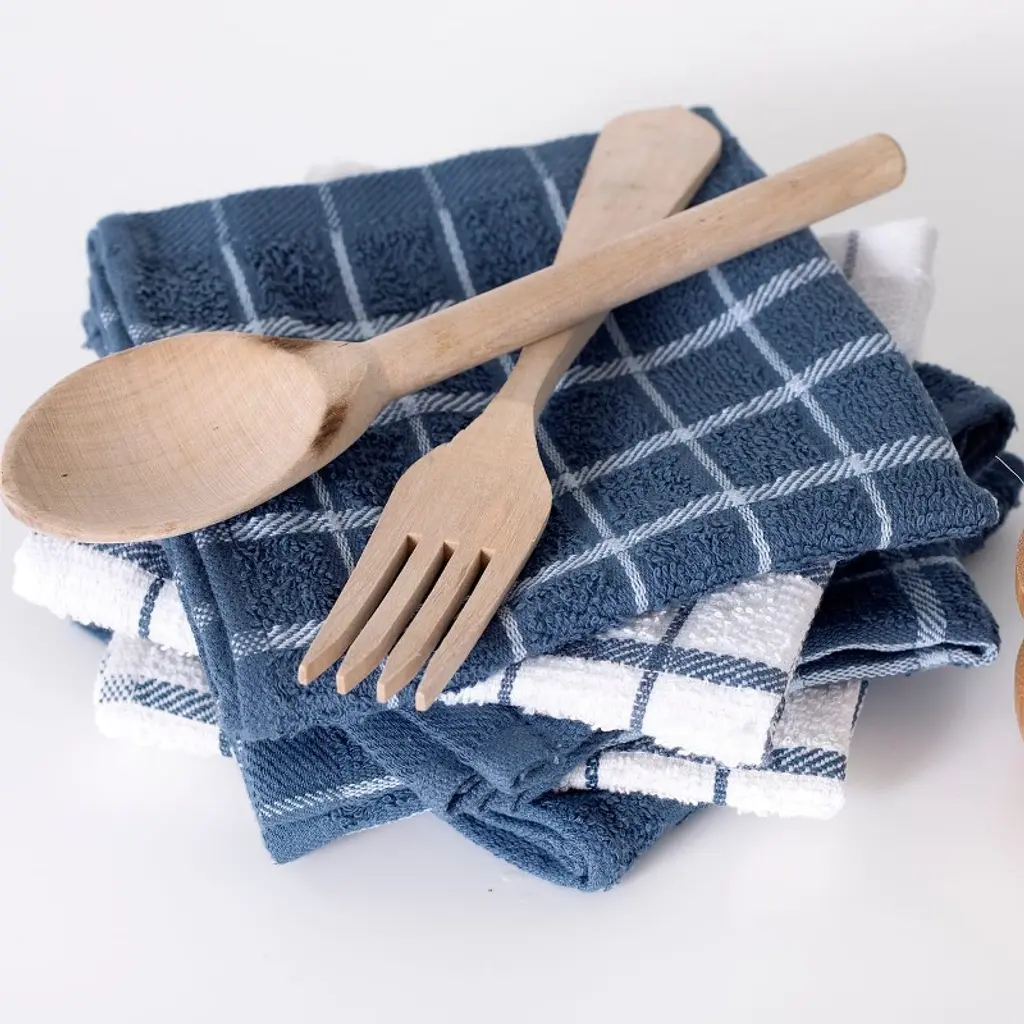 John Ritzenthaler Co. Terry Check Dish Cloth Set Of Six Federal Blue